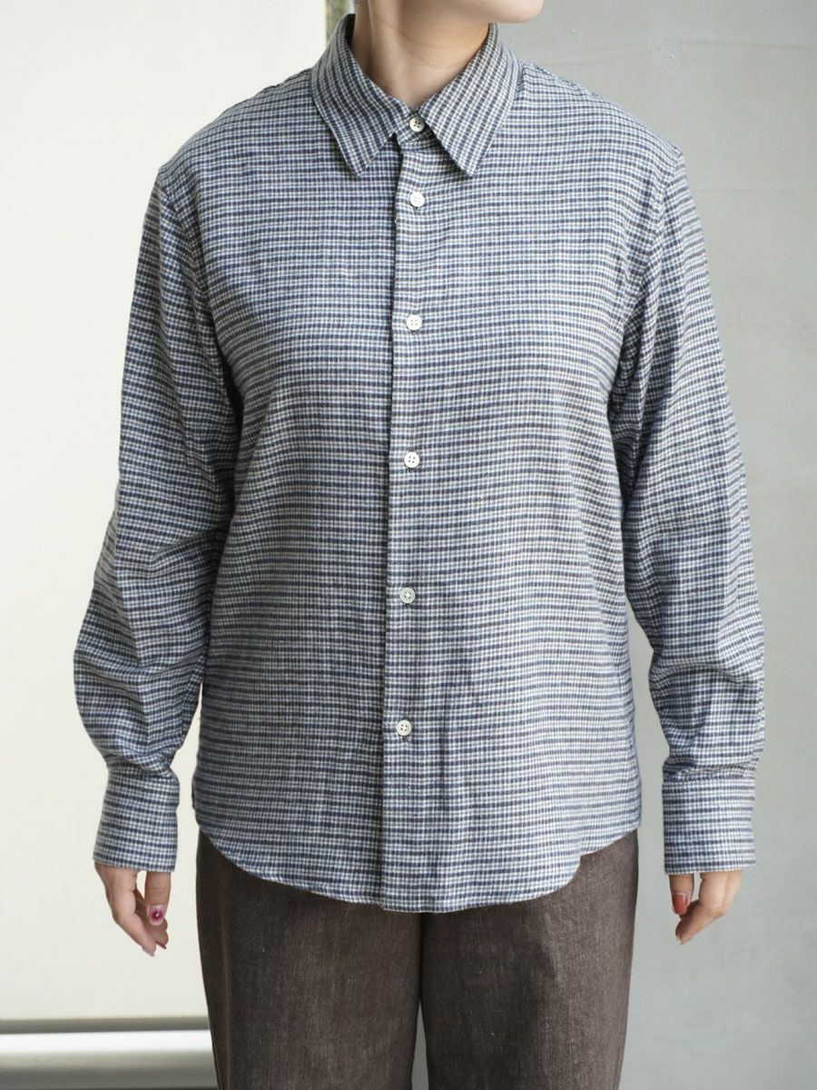 COTTON LINEN FLANNEL CHECKED SHIRT[BLUE]
