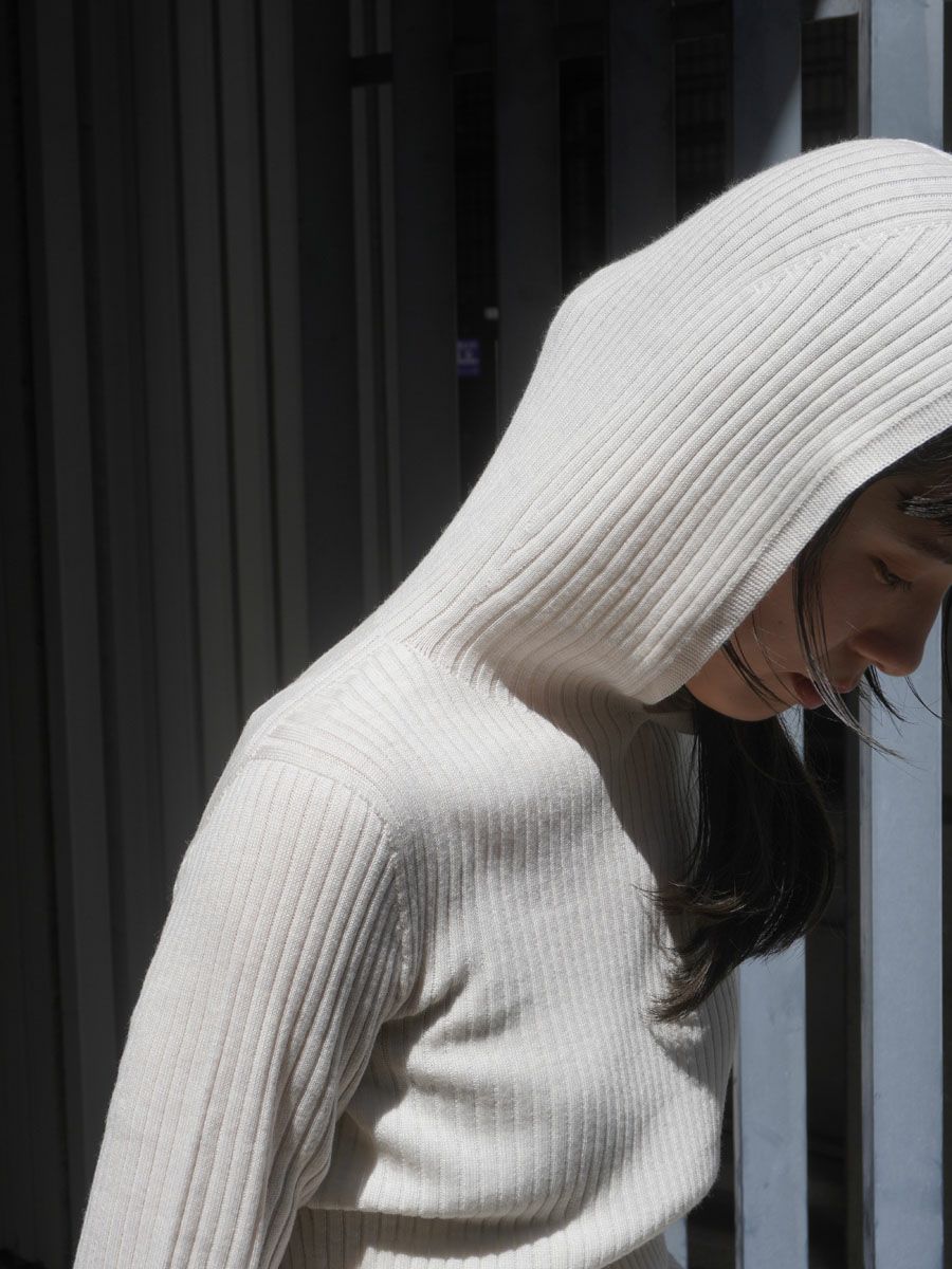 WOOL RIB HOODIE[IVORY]