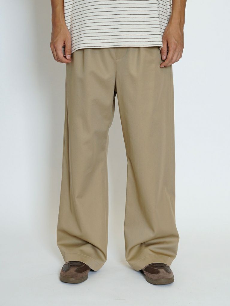 2TUCK WIDE COTTON TROUSERS[BEIGE]