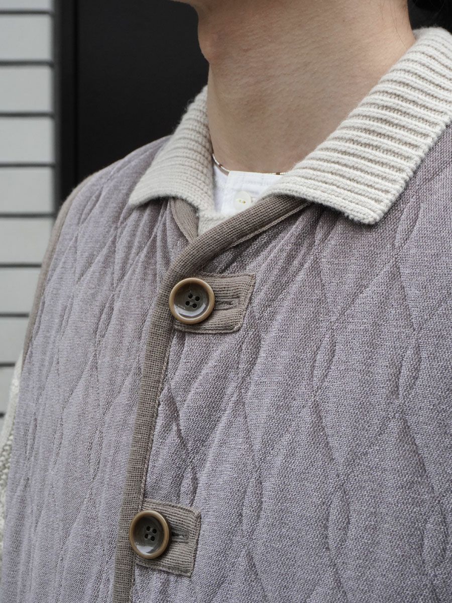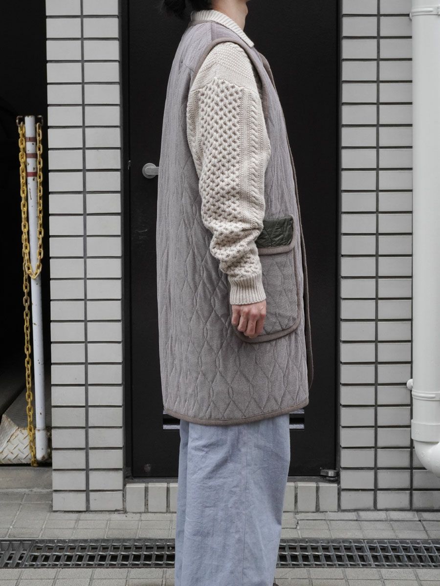 SILK-LOFT QUILTING CAR CAR LONG VEST[MOCHA MESH]