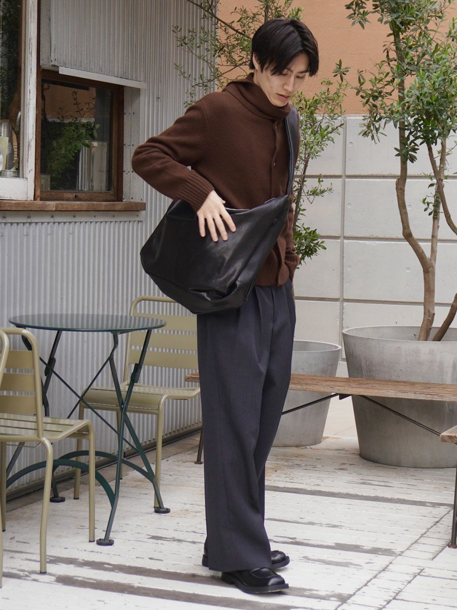 SHIRRING HANDLE LEATHER SHOULDER BAG[BLACK]