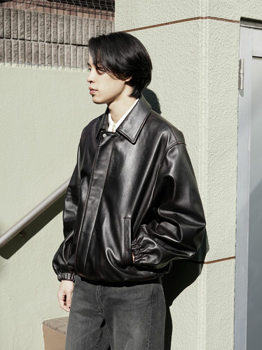 SHEEP LEATHER ZIP SHORT JACKET[BLACK]