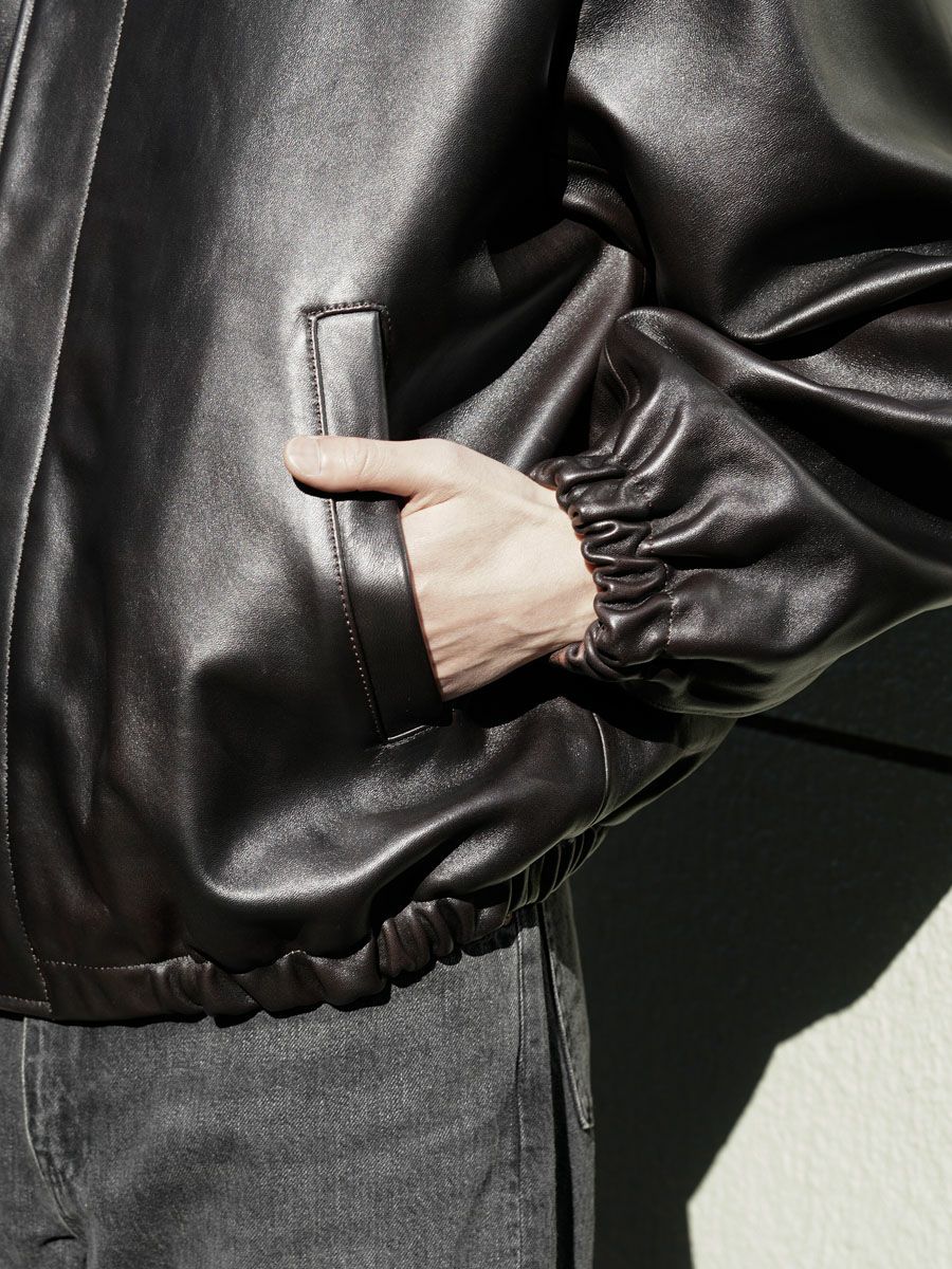 SHEEP LEATHER ZIP SHORT JACKET[DARK BROWN]