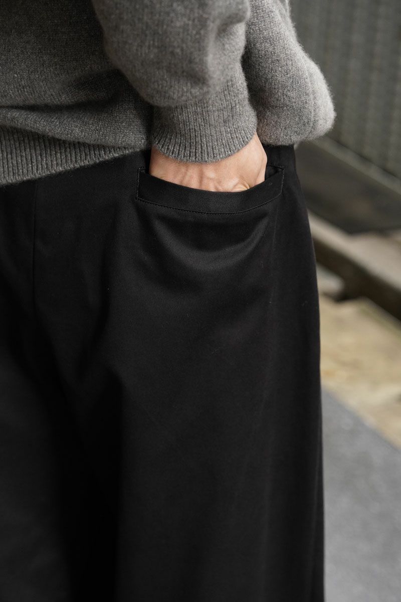SUMMER WOOL WIDE TROUSERS[BLACK]