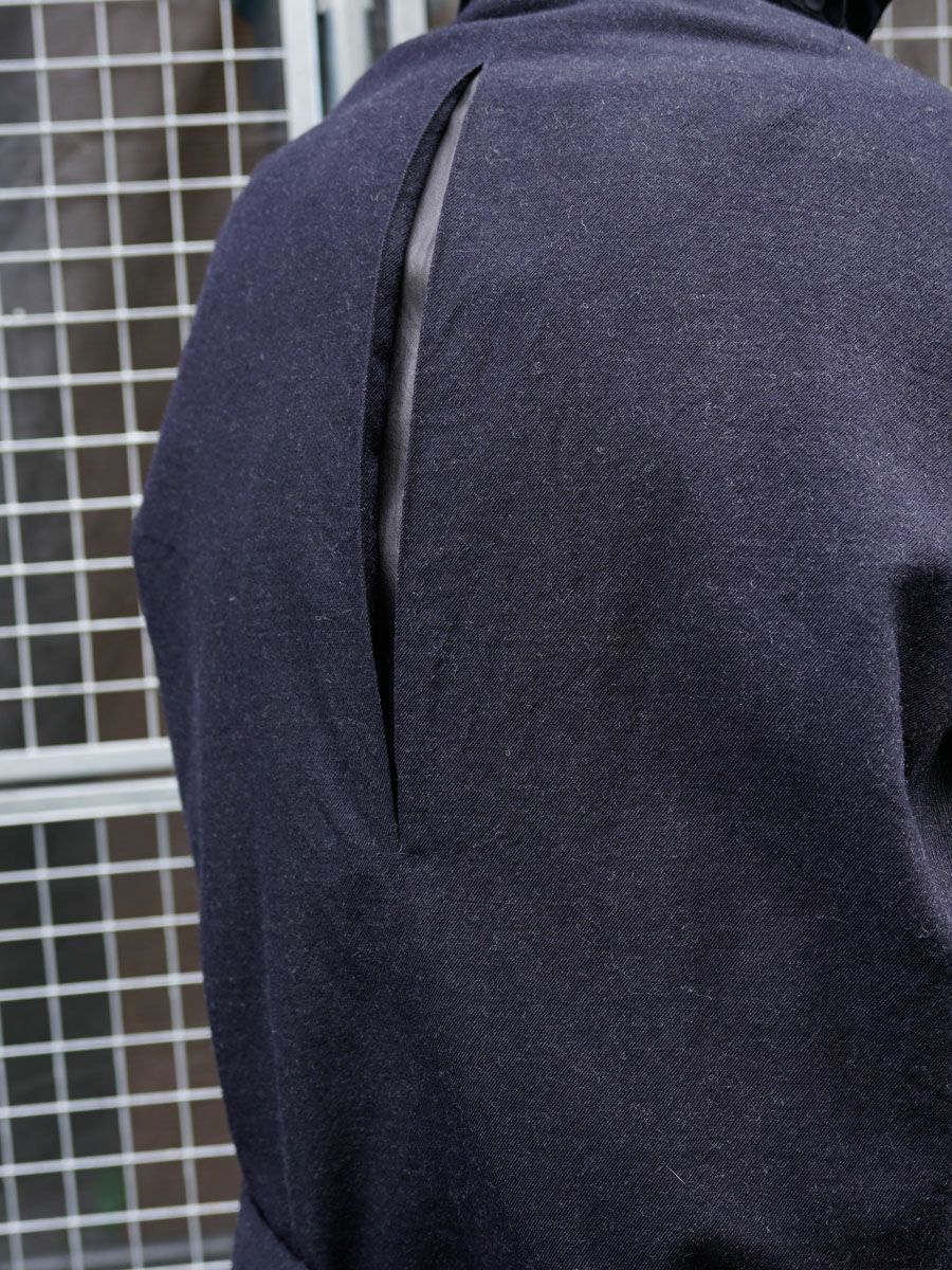 自身が蒐集した古着のエッセンスを取り入れながらパタンナーとしての理論と経験に基づき、クラシカルなディティールと、モダンなカッティングを融合したスタイルを提案しています。 -