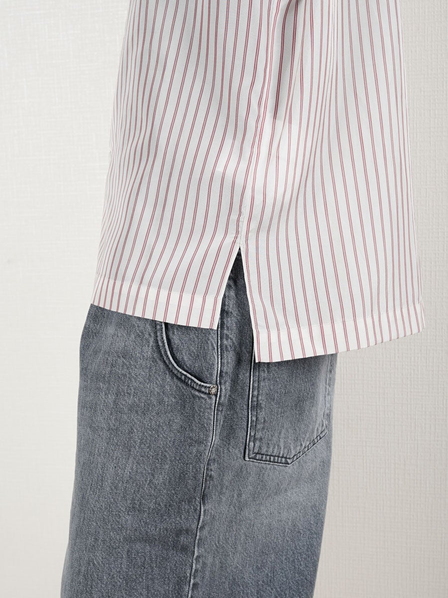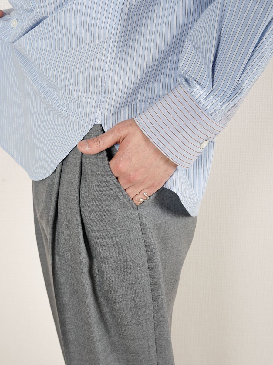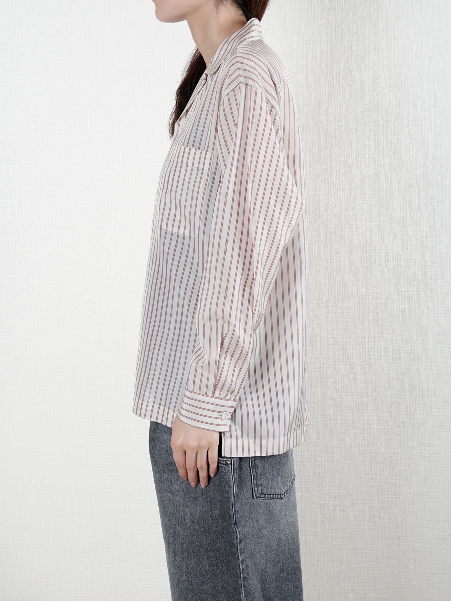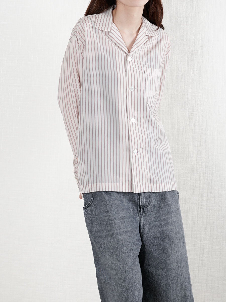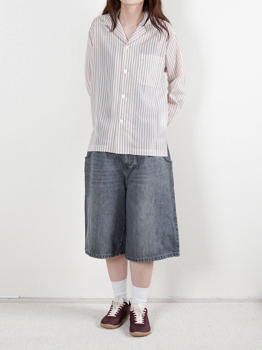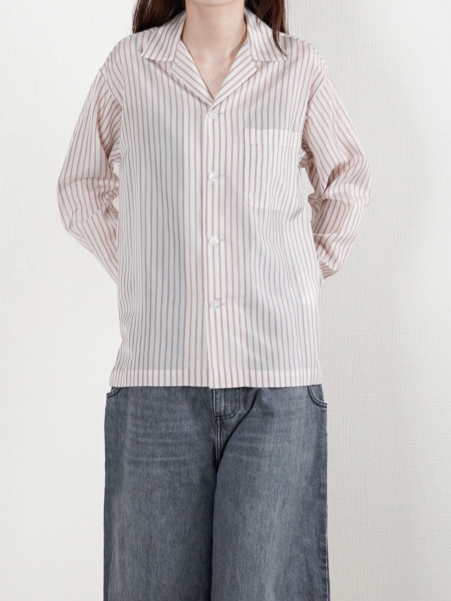 他の画像を見る KANEMASA PHIL. (カネマサフィル) 46G Stripe Ether Shirt[SAX] ¥ 24,200 税込 販売期間 2026/04/18 12:00 〜 お気に入りに登録する
