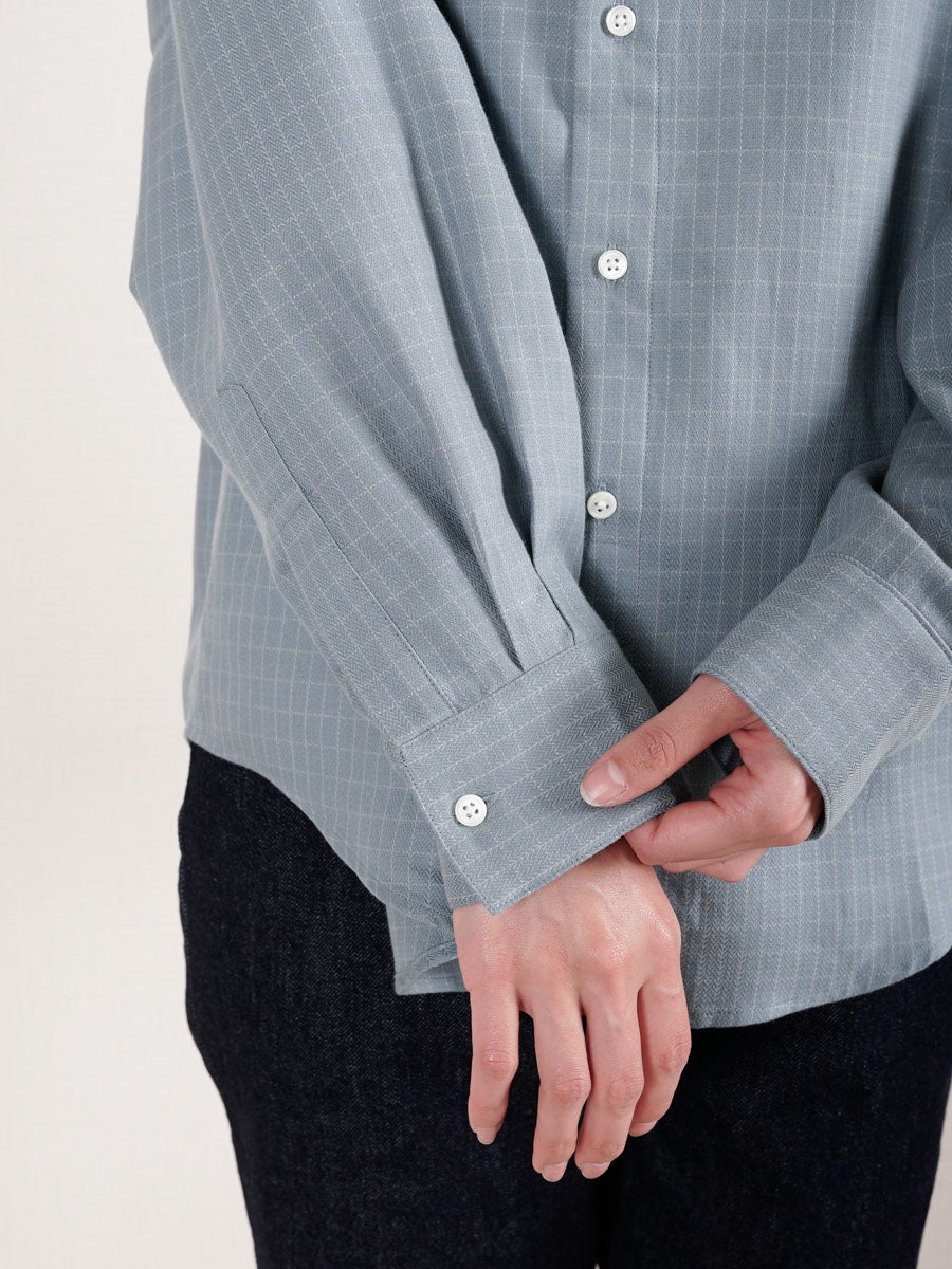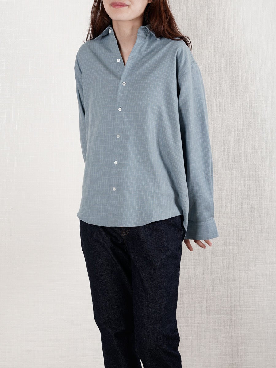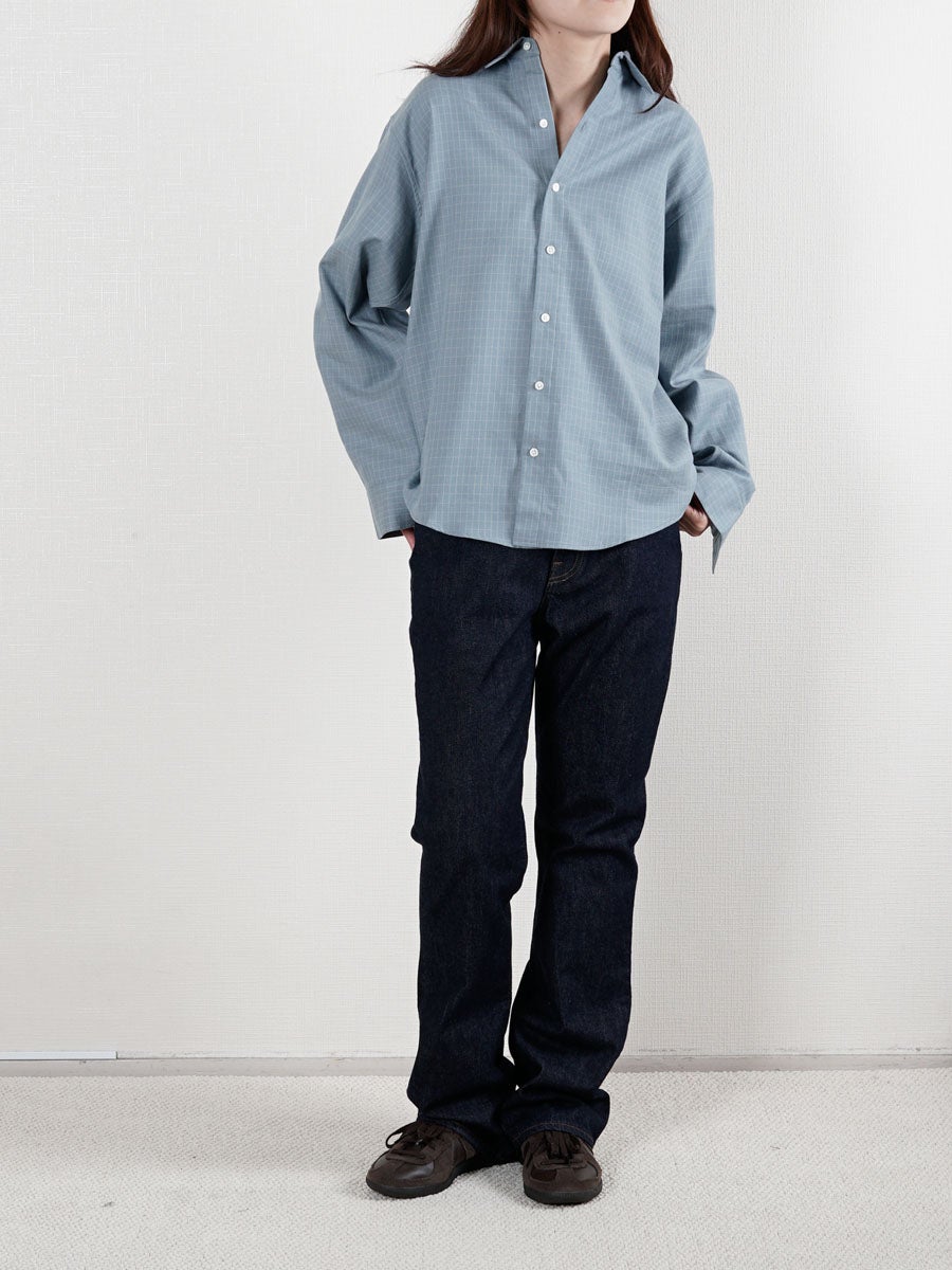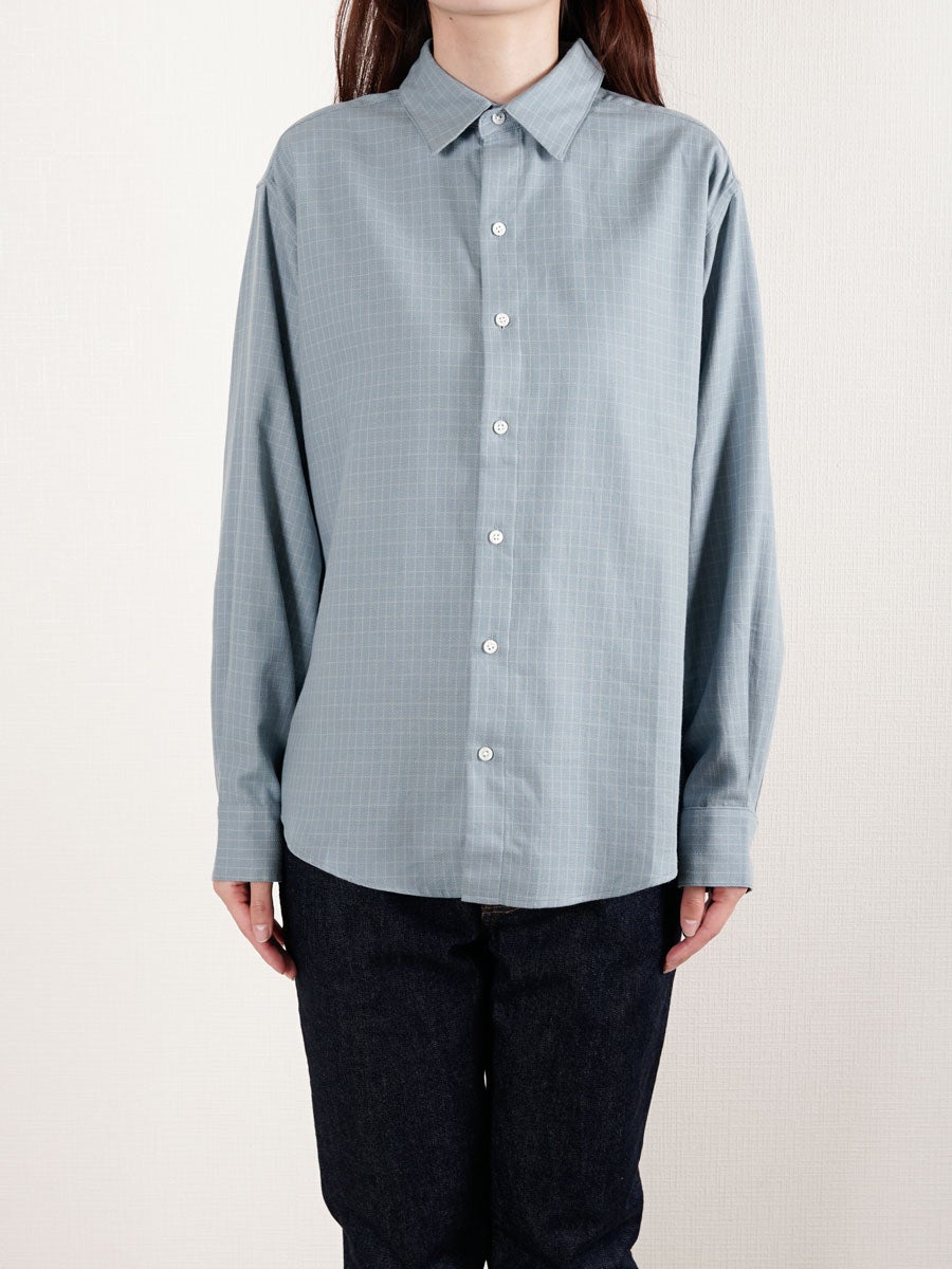 他の画像を見る KANEMASA PHIL. (カネマサフィル) 46G Ether Shirt[BLUE] ¥ 24,200 税込 販売期間 2026/04/18 12:00 〜 お気に入りに登録する