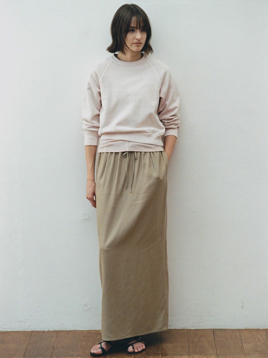 RAYON LINEN EASY MAXI SKIRT[BEIGE]