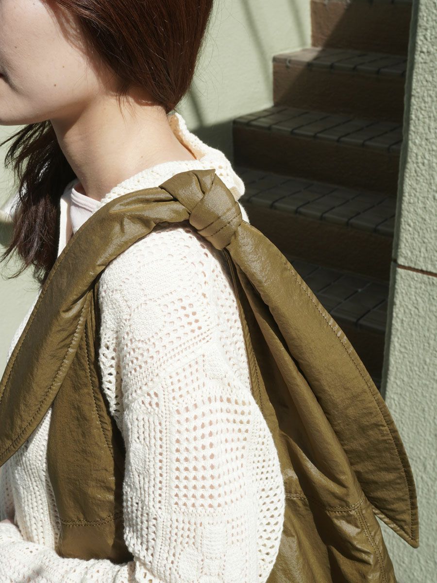 KNOTTED LEATHER LIKE NYLON SHOULDER BAG[CREAM]