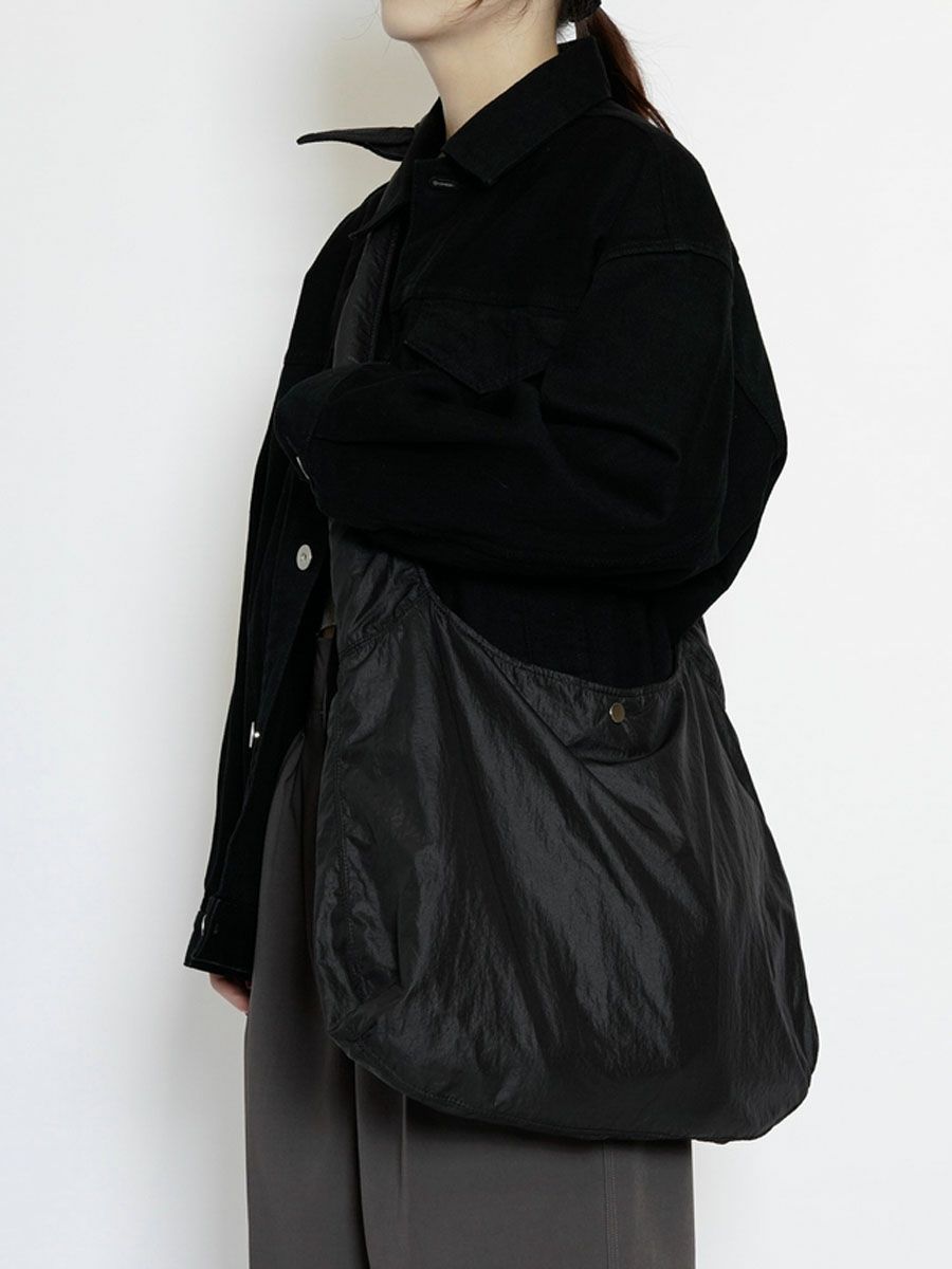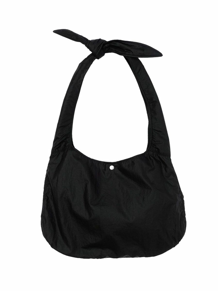 KNOTTED LEATHER LIKE NYLON SHOULDER BAG[BLACK]
