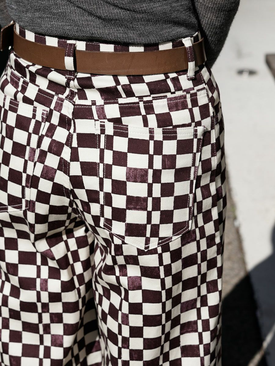 Checkered High Waist Wide Pants[BURGUNDY]
