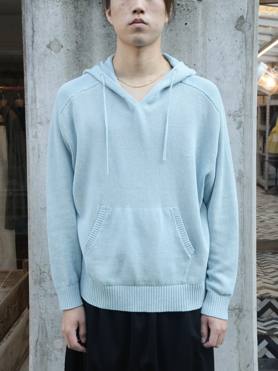 LINEN KNIT HOODIE[BLUE]