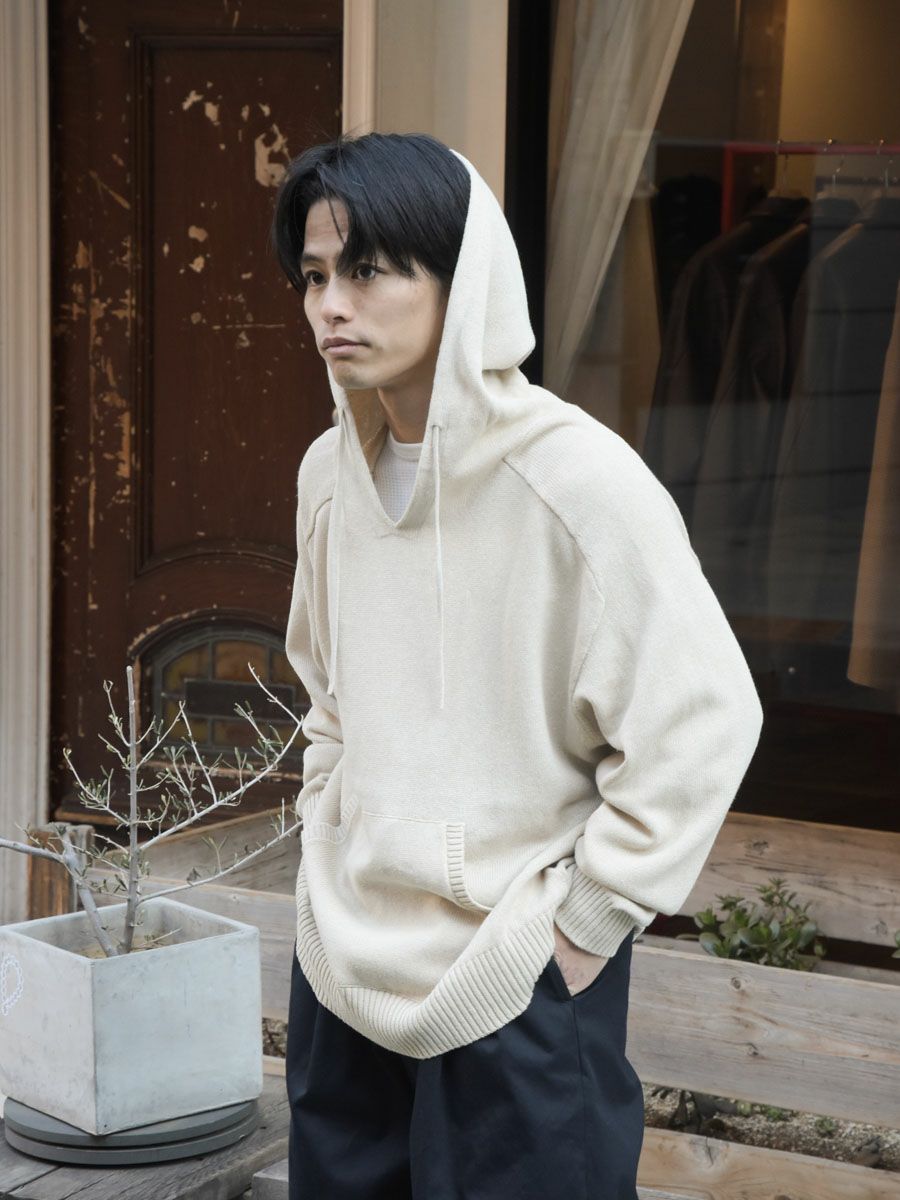 LINEN KNIT HOODIE[ECRU]