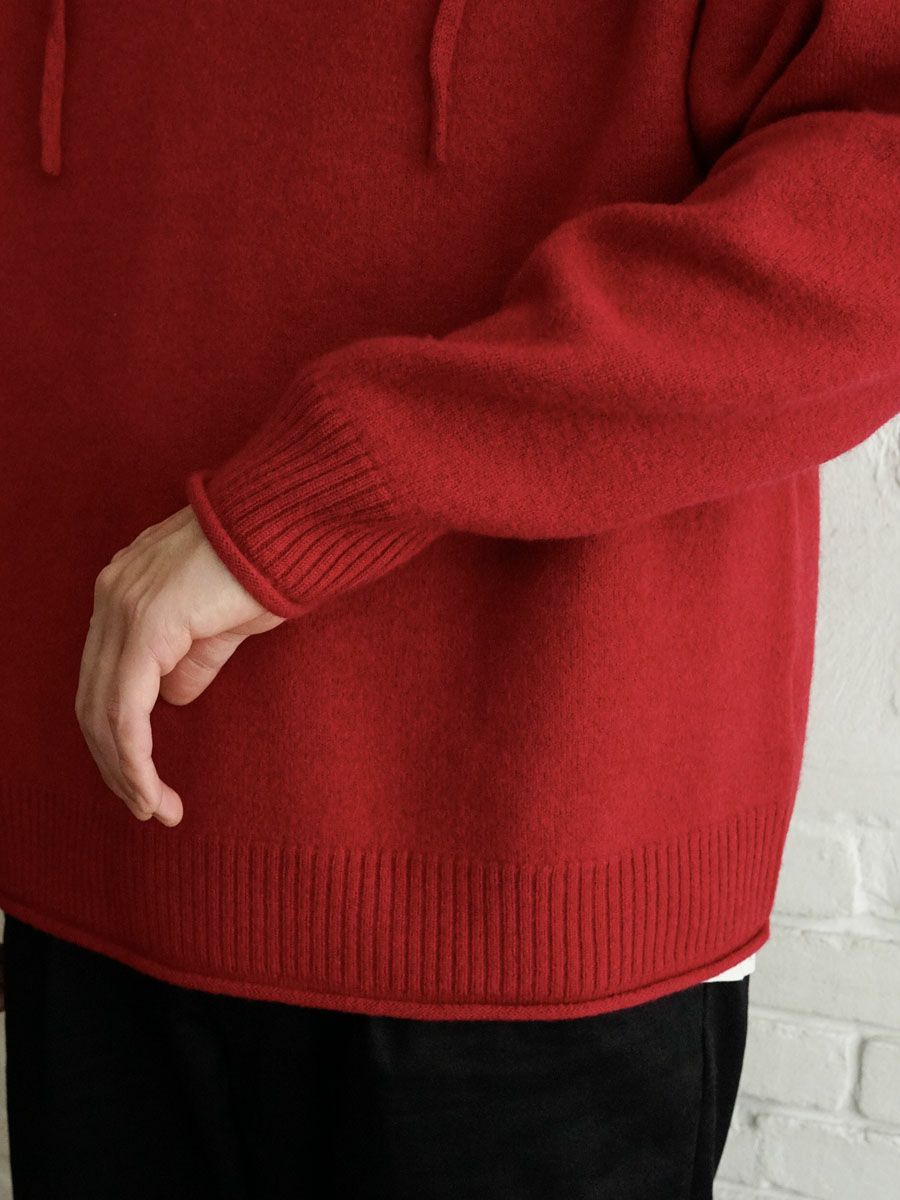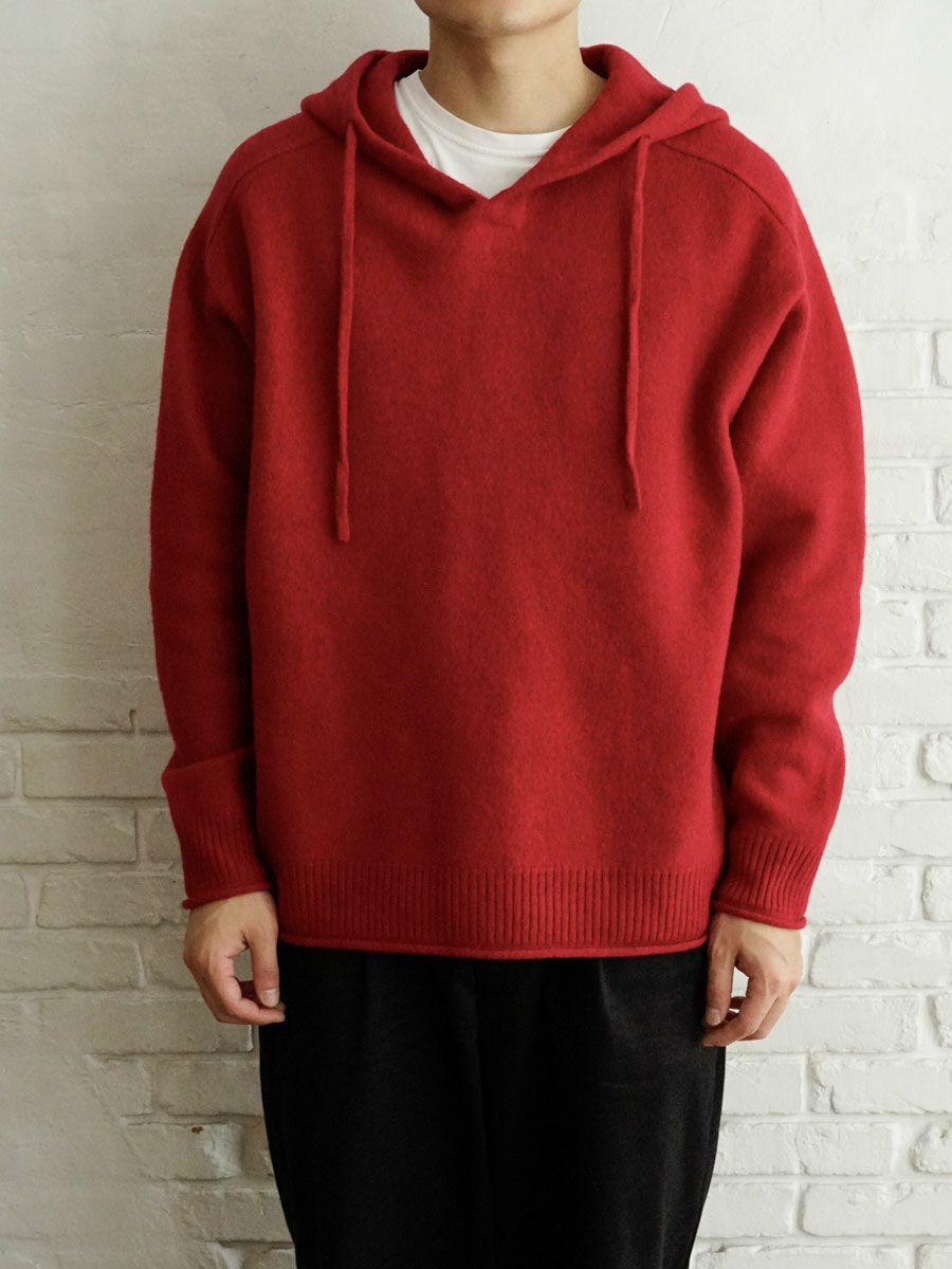 FELTED MERINO WOOL HOODIE KNIT[RED]