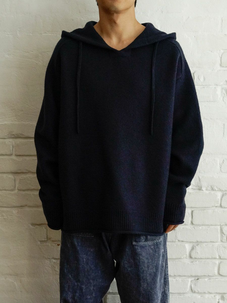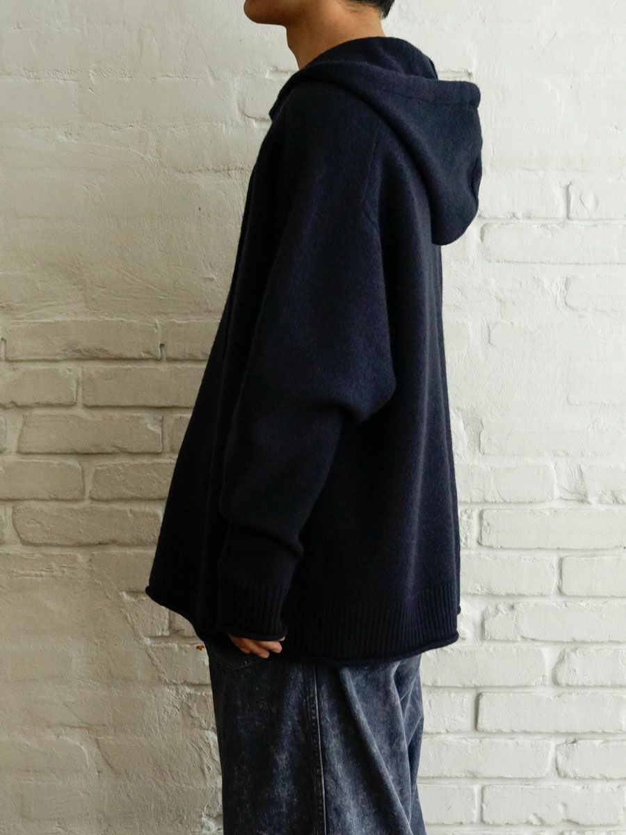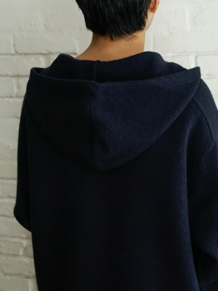 FELTED MERINO WOOL HOODIE KNIT[NAVY]