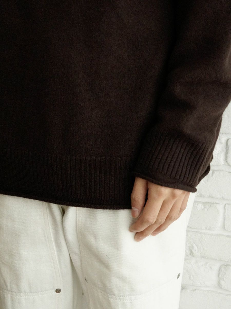 FELTED MERINO WOOL CREW NECK KNIT[BROWN]