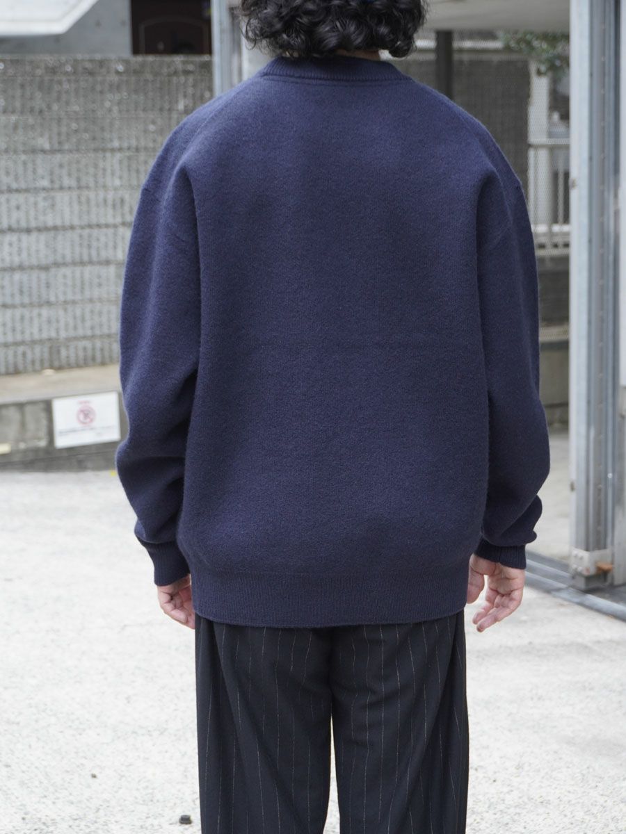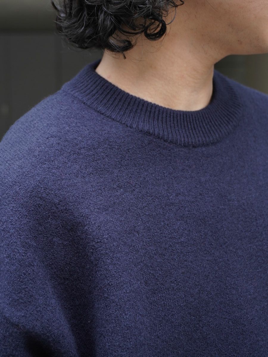 FELTED MERINO WOOL CREW NECK KNIT[NAVY]
