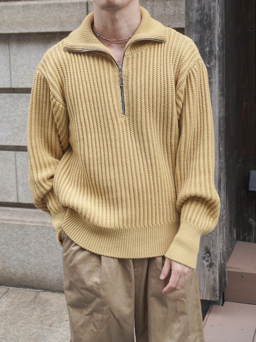 TWIST WOOL HALF ZIP NECK P/O[STRAW]