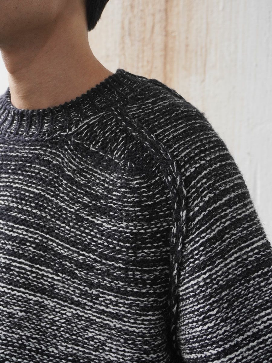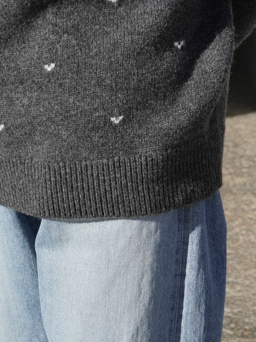 KID MOHAIR MIX JACQUARD KNIT LS[CHARCOAL MIX]
