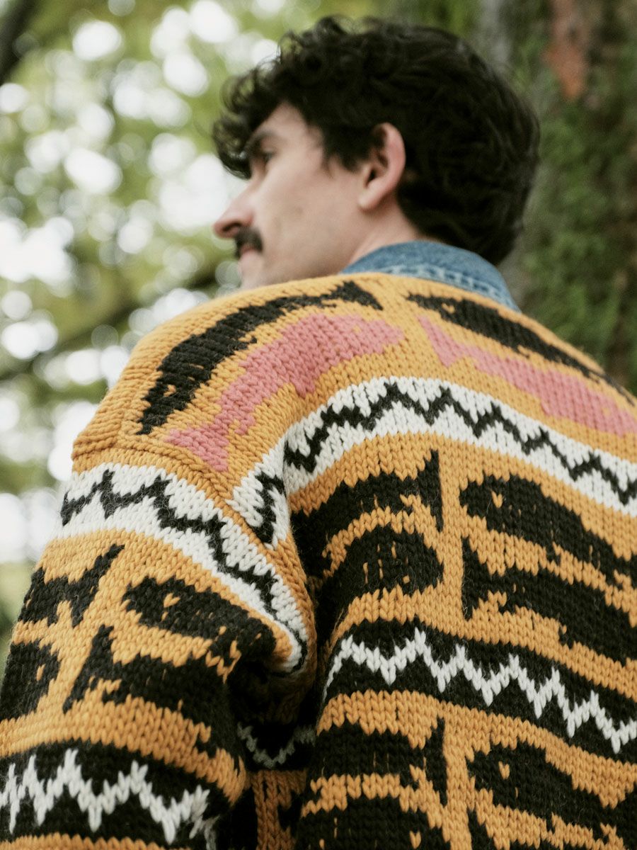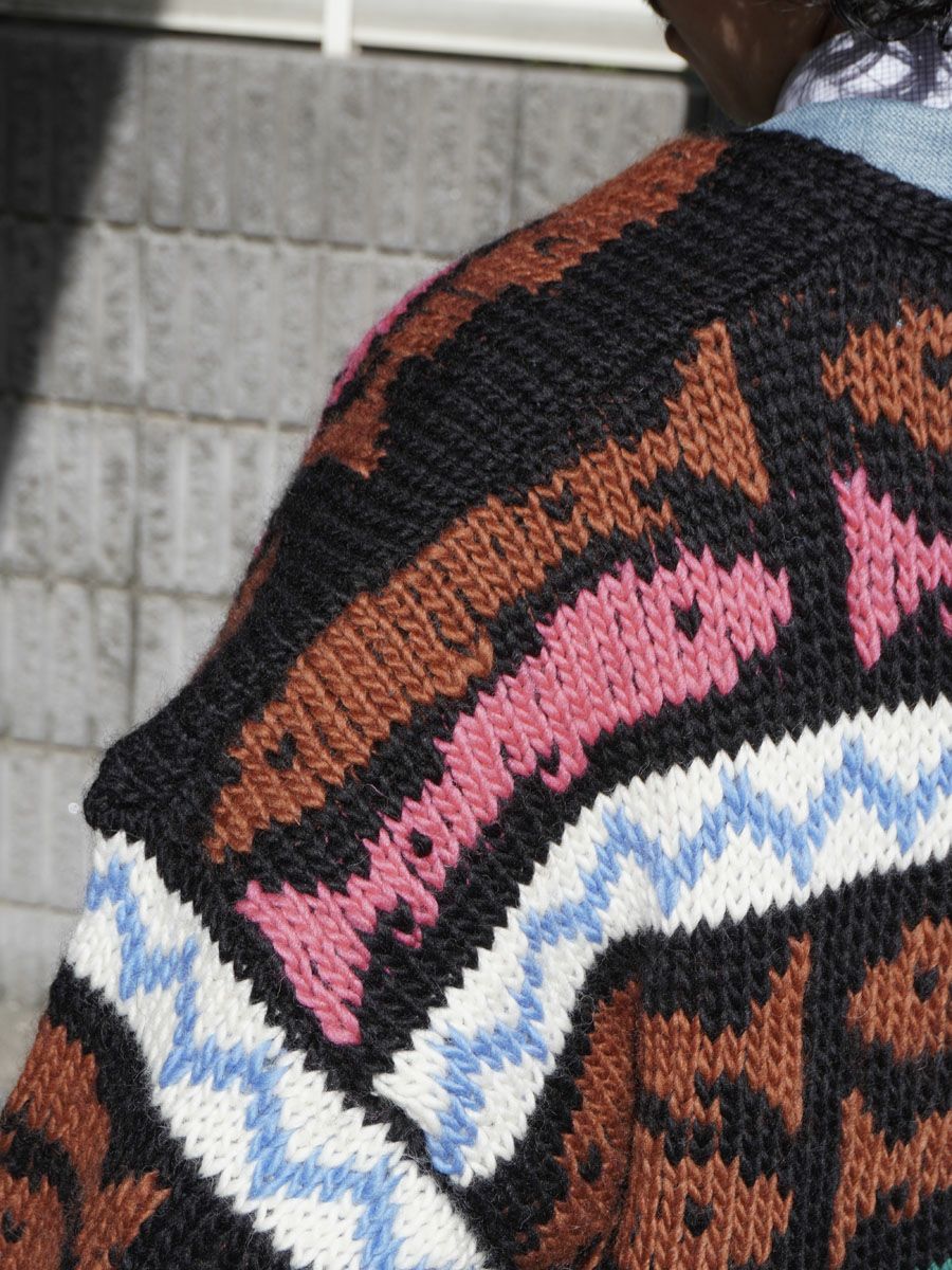 KID MOHAIR MIX JACQUARD KNIT LS[BROWN MIX]