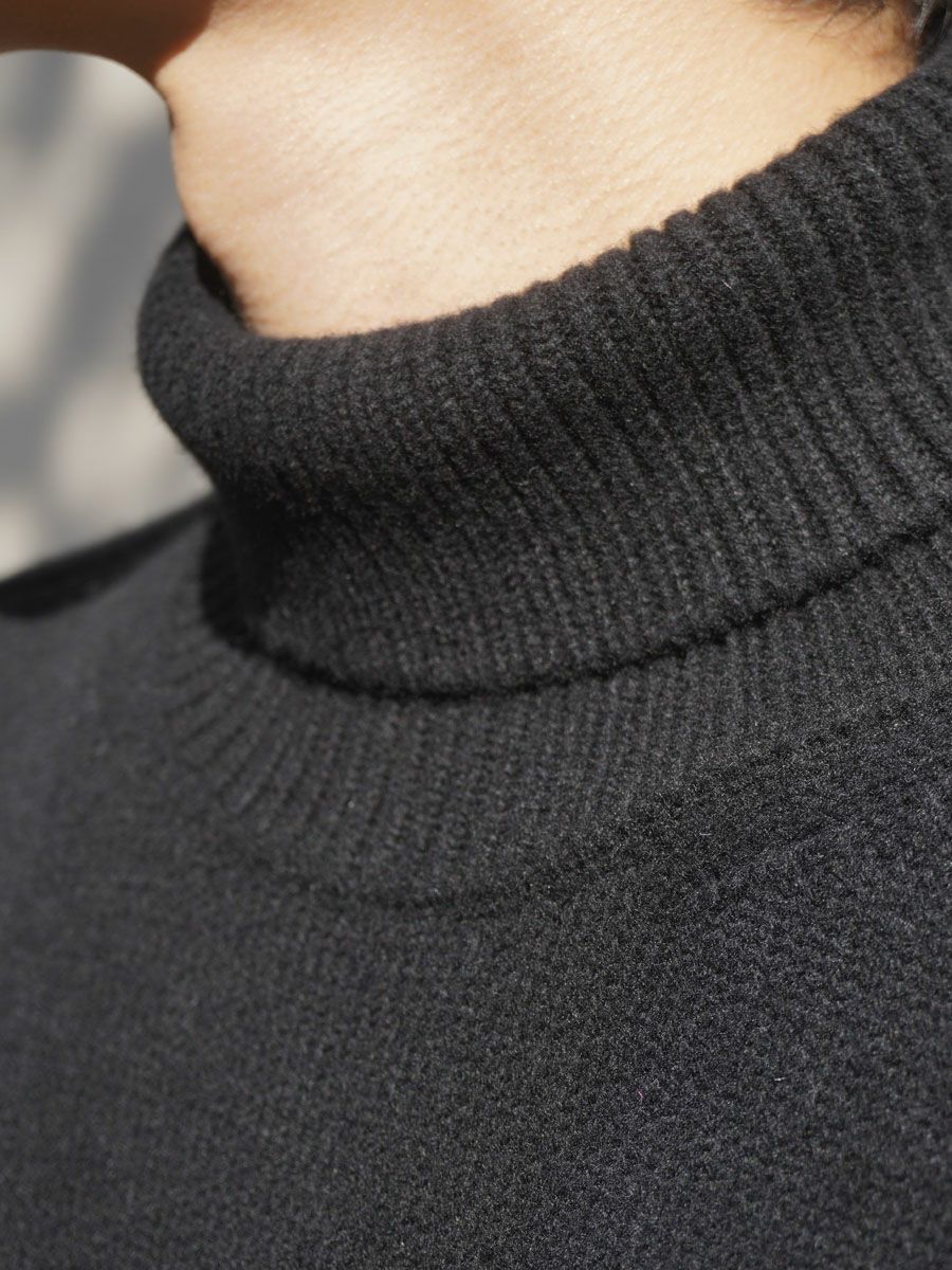 EXTRA FINE WOOL WARM KNIT TURTLE NECK LS[BLACK]