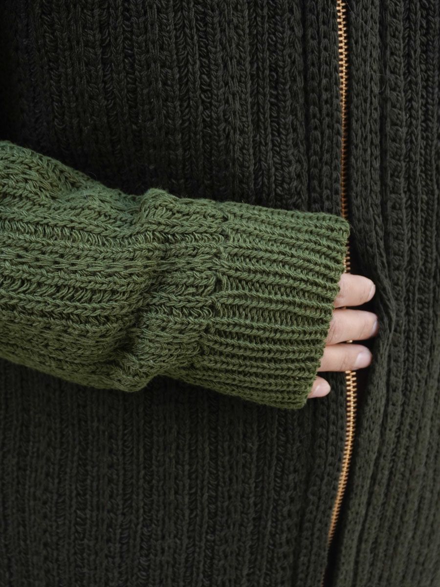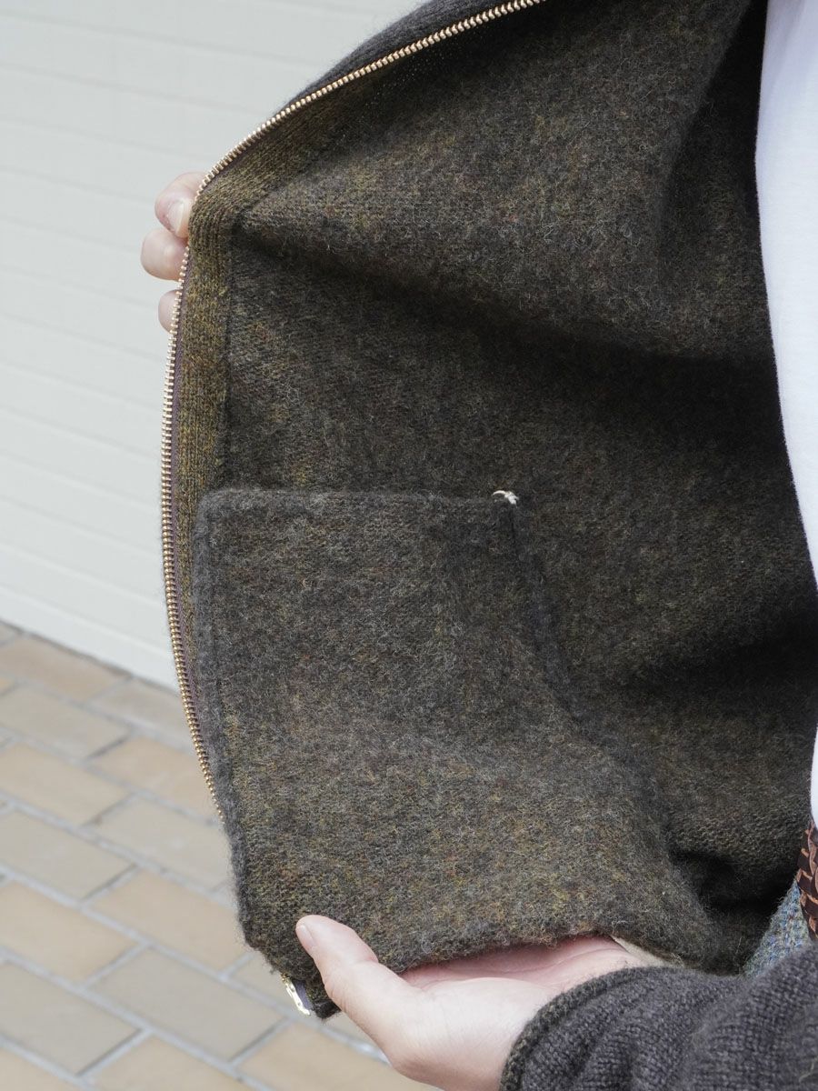 AUSTRIAN ORGANIC SHEEP WOOL ZIP UP KT[OLIVE]