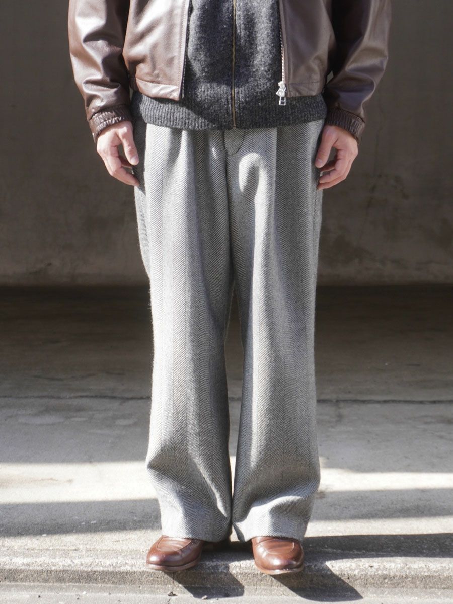 N.N.Z. TROUSERS W[GRAY HERRINGBONE]