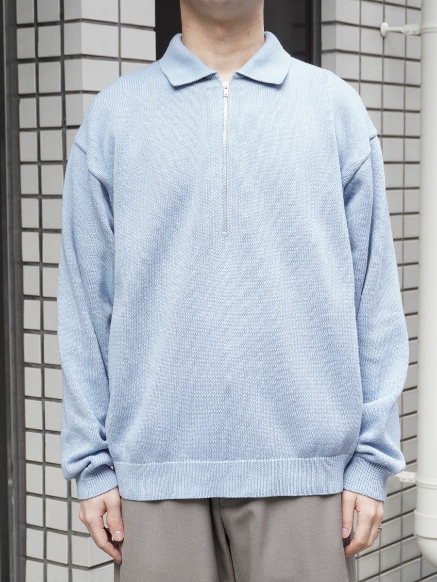 COTTON KNIT HALF ZIP[L.BLUE]