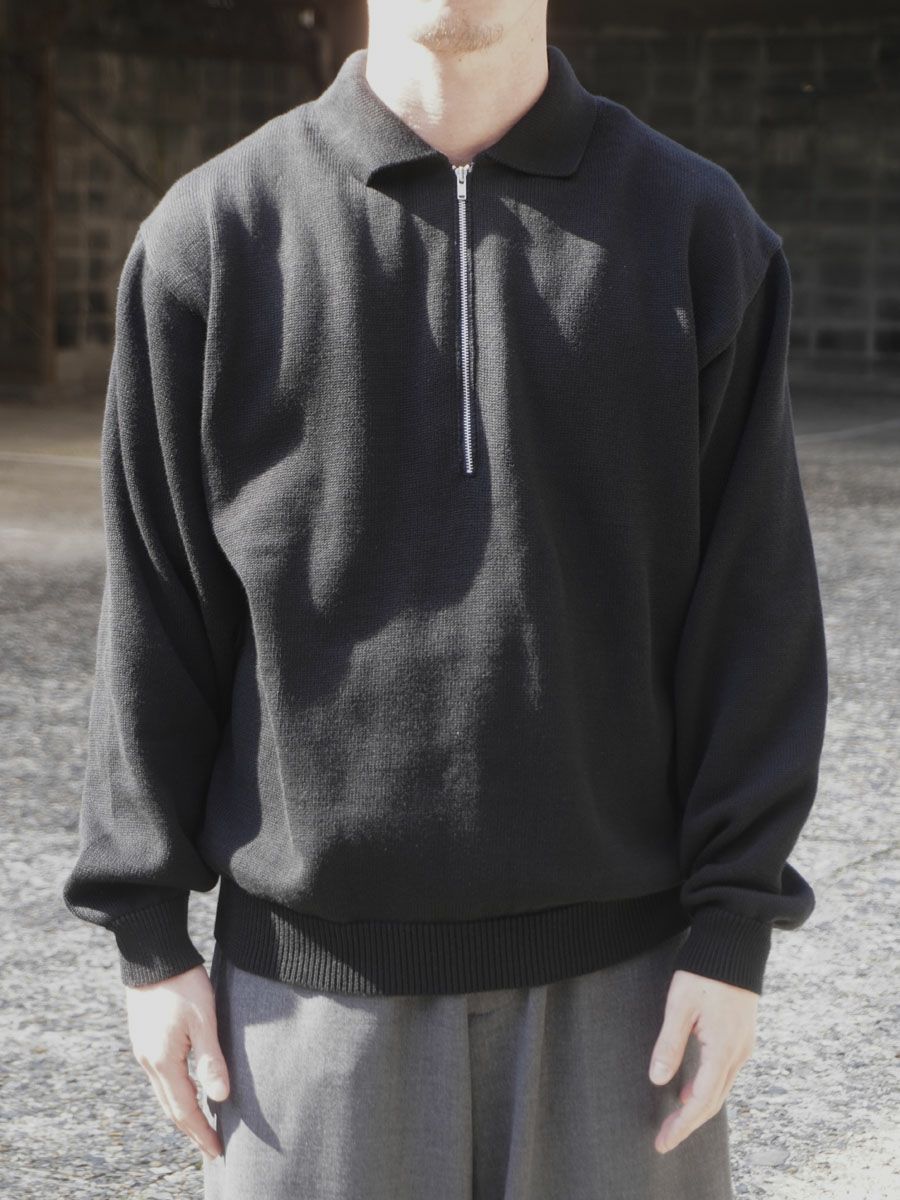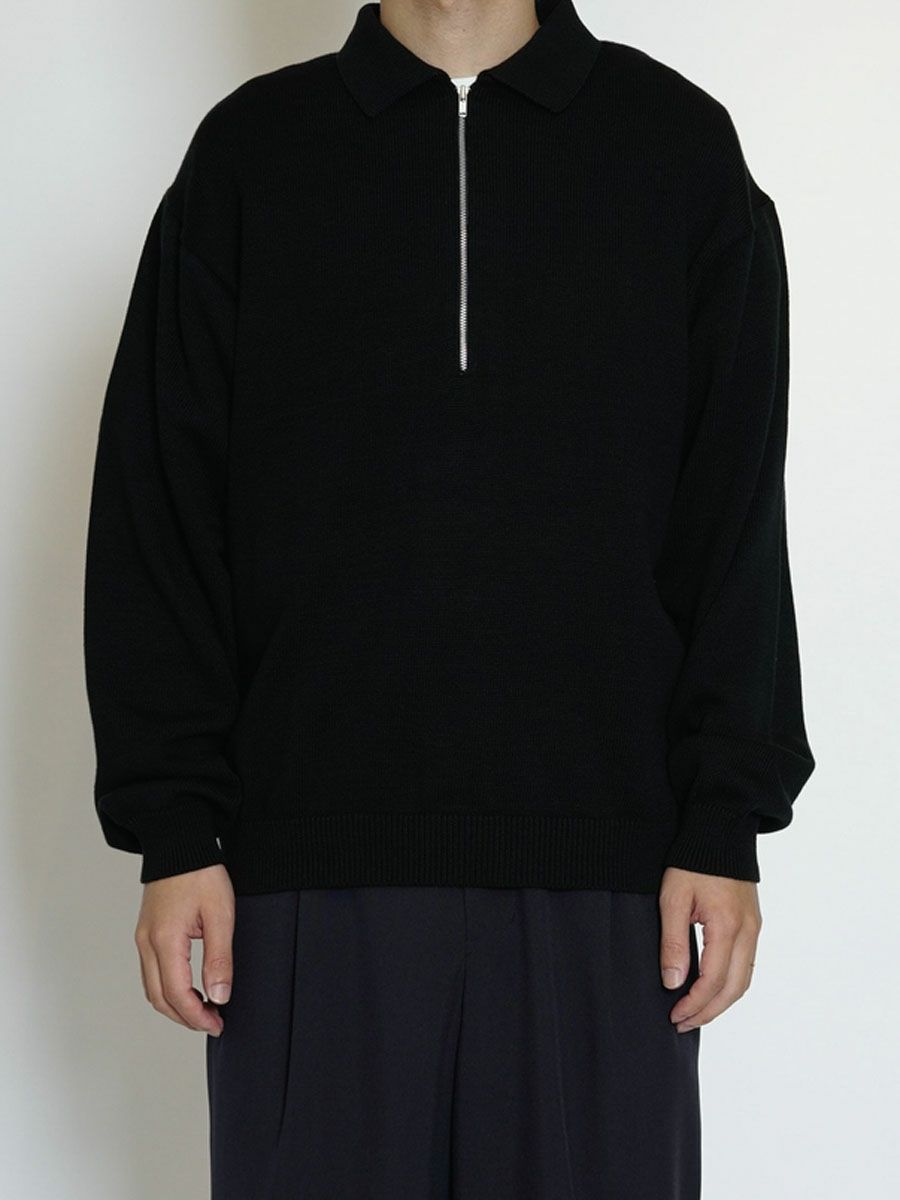 COTTON KNIT HALF ZIP[BLACK]