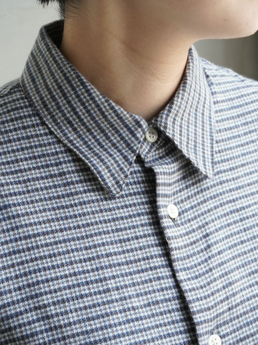 COTTON LINEN FLANNEL CHECKED SHIRT[BLUE]