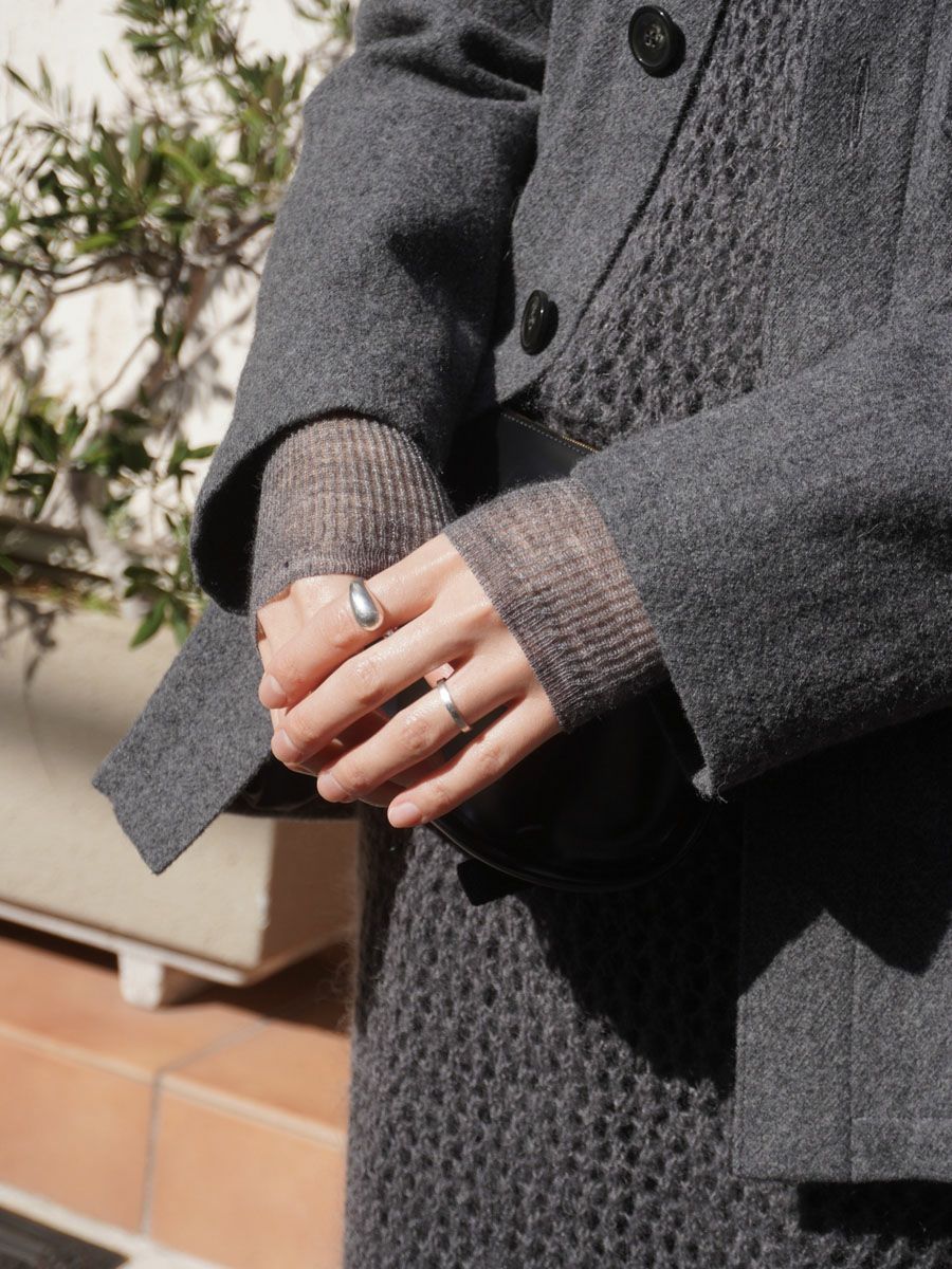 ALPACA BLENDED SHEER CREW NECK TOP[GRAY]