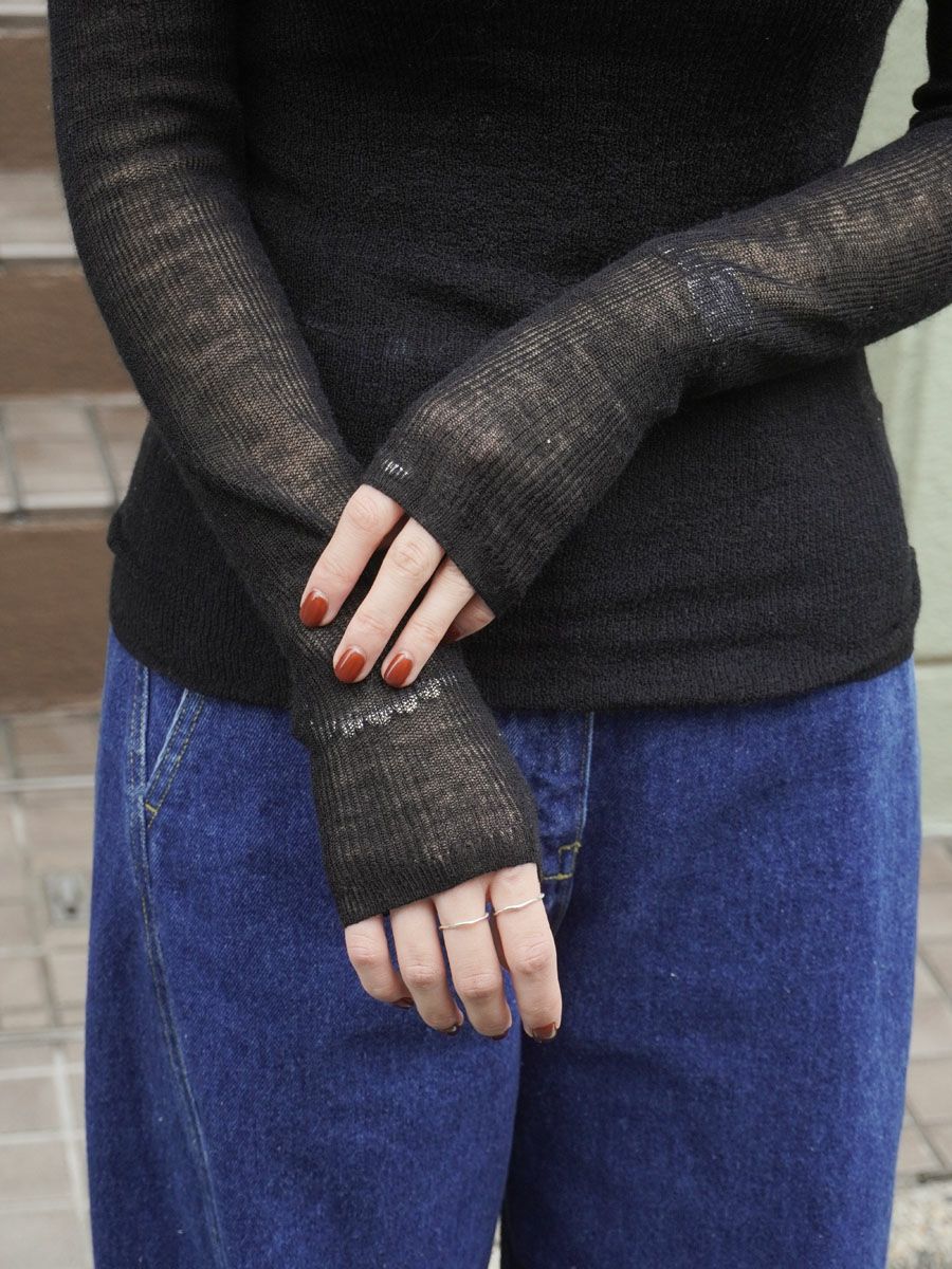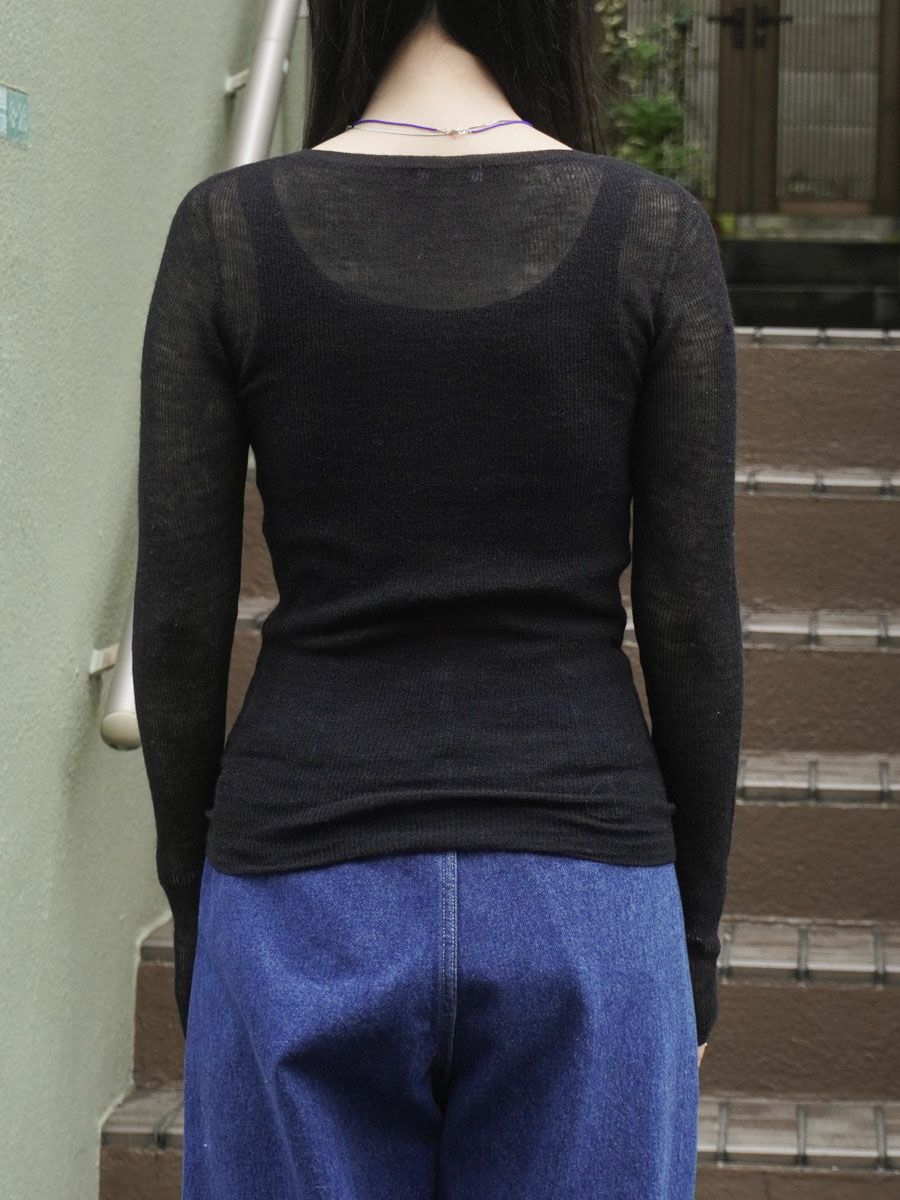 ALPACA BLENDED SHEER CREW NECK TOP[BLACK]