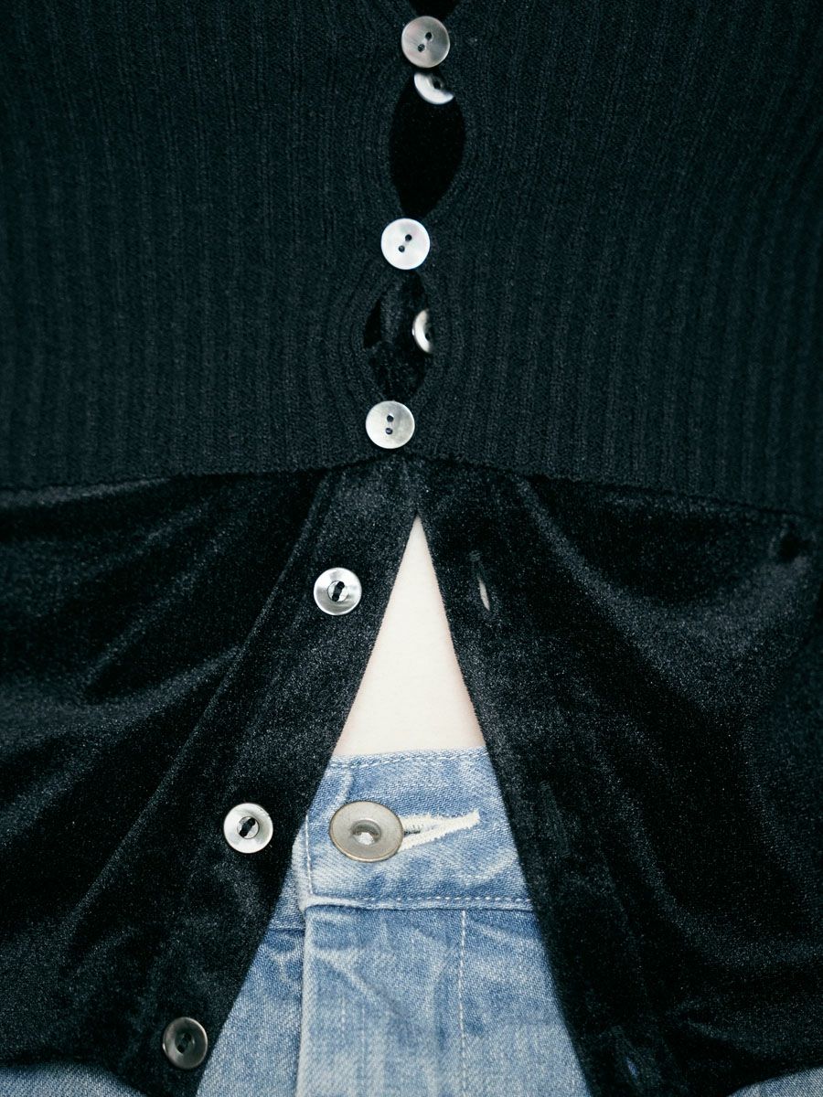 SHEER VELOUR CARDIGAN[BLACK]