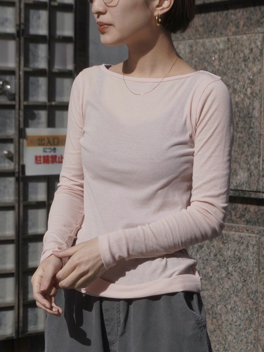 SHEER TELECO BOAT NECK TOP L/S[PINK]