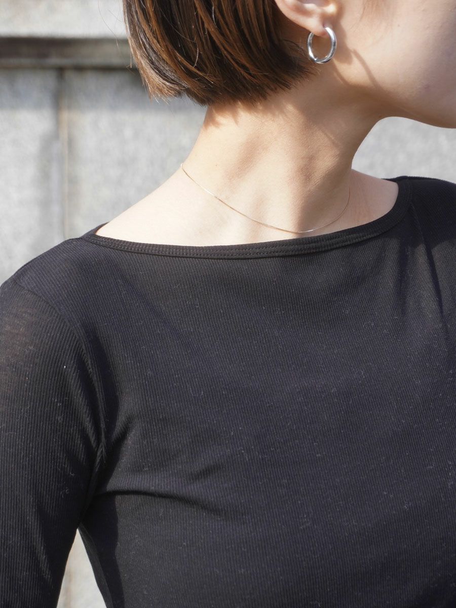 SHEER TELECO BOAT NECK TOP L/S[BLACK]