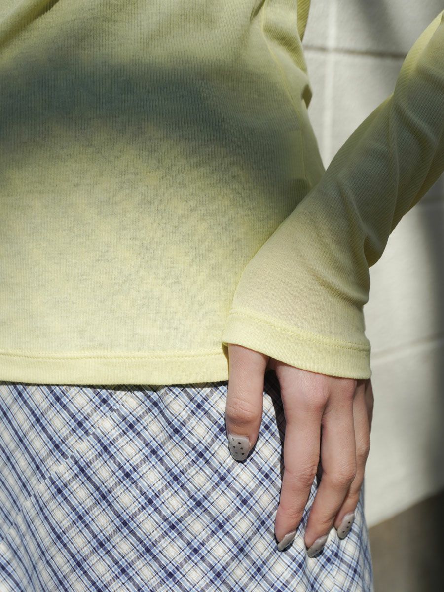 SHEER TELECO BOAT NECK TOP L/S[YELLOW]