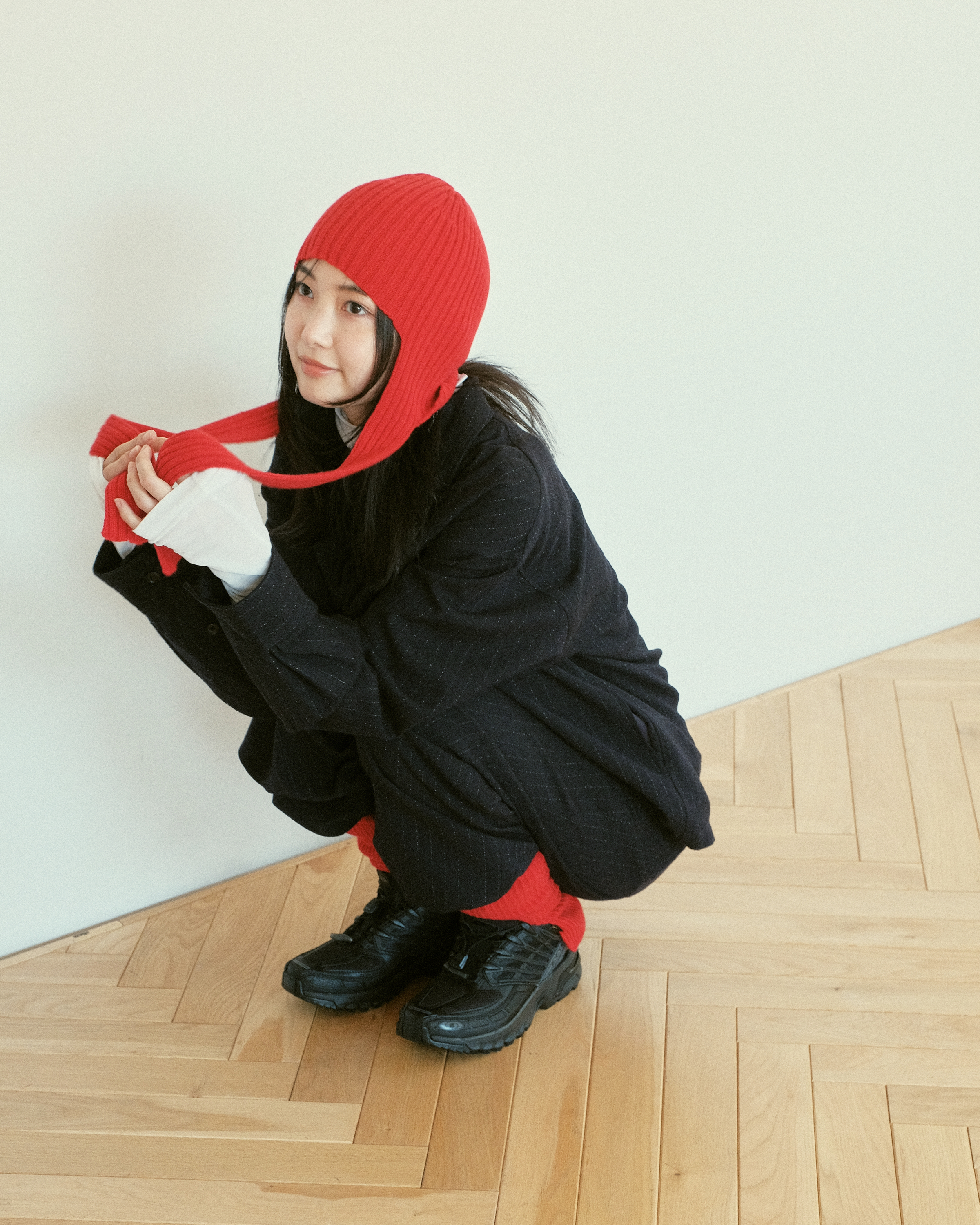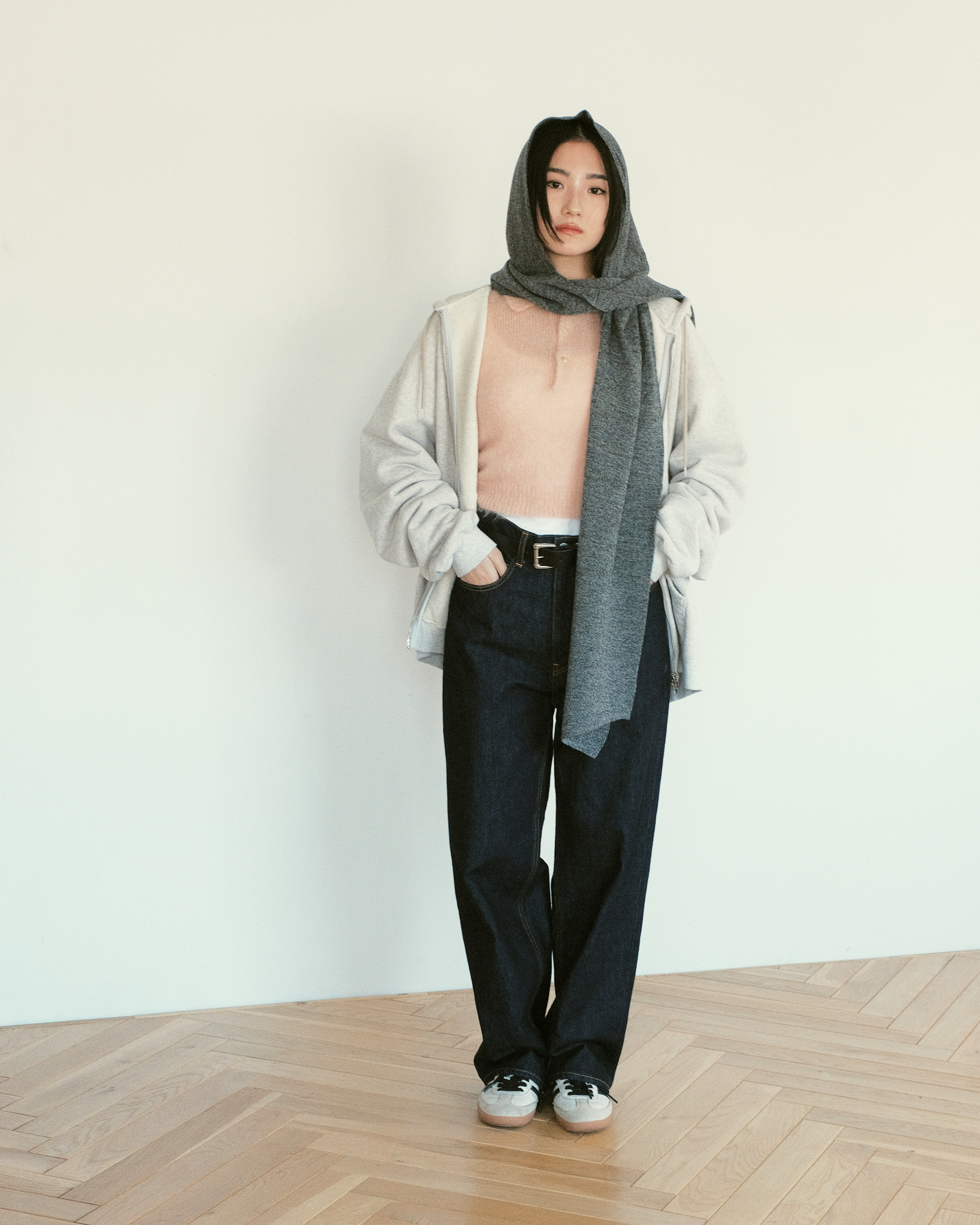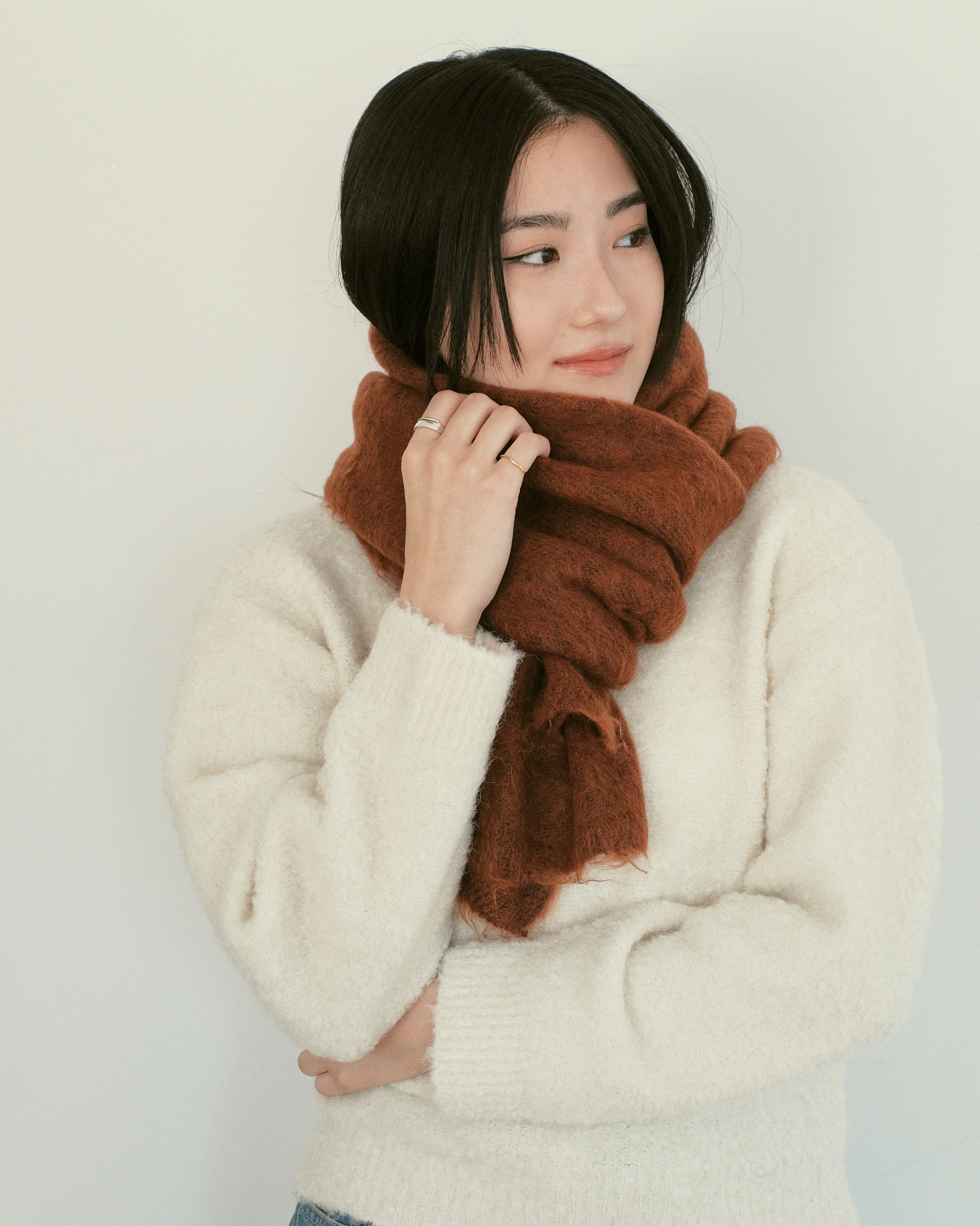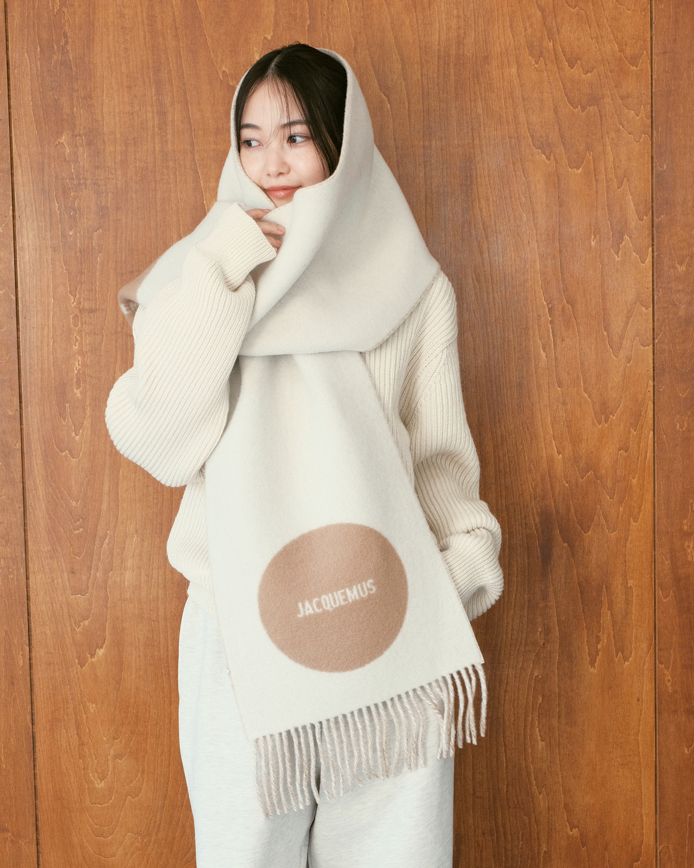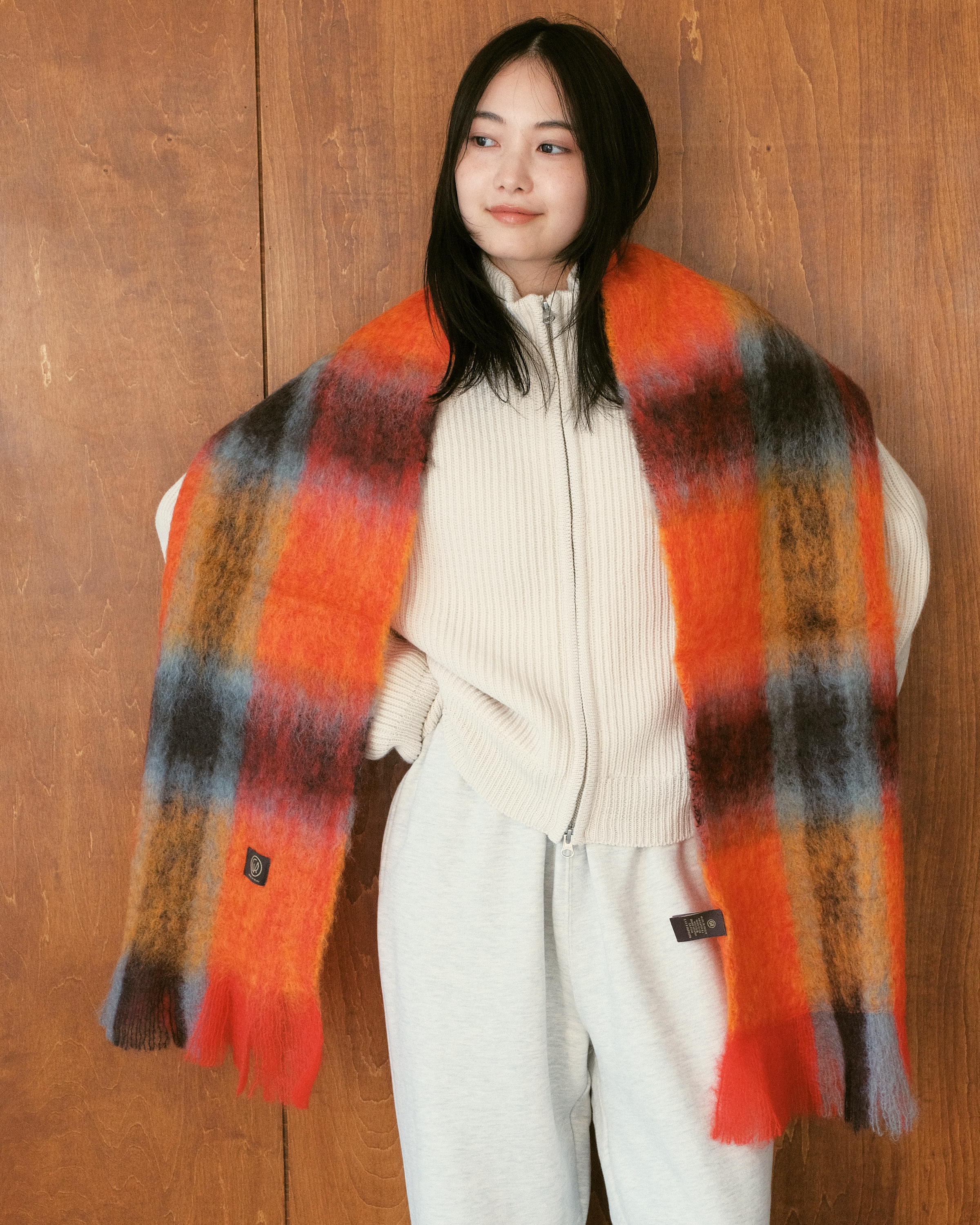 "WASHABLE WOOL HOODIE RIB SCARF"