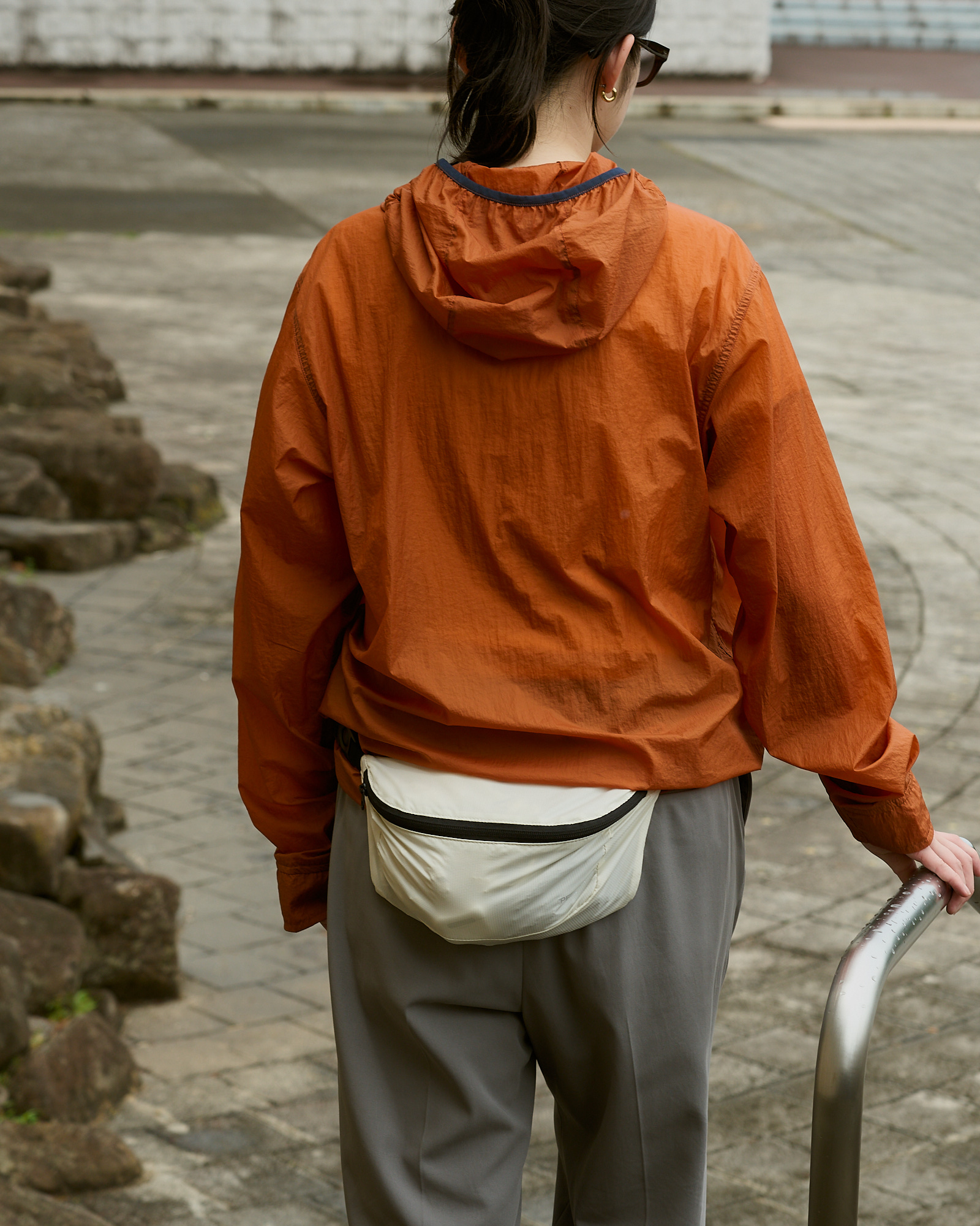 ポケットのたくさんついたナイロンジャケットと、ウエストポーチをピックしました。