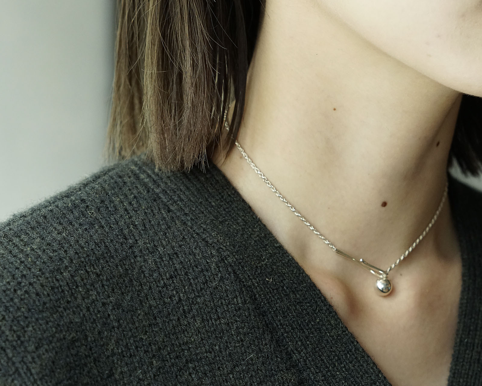 ボールと華奢なチェーンの対比が特徴的なアイテム。