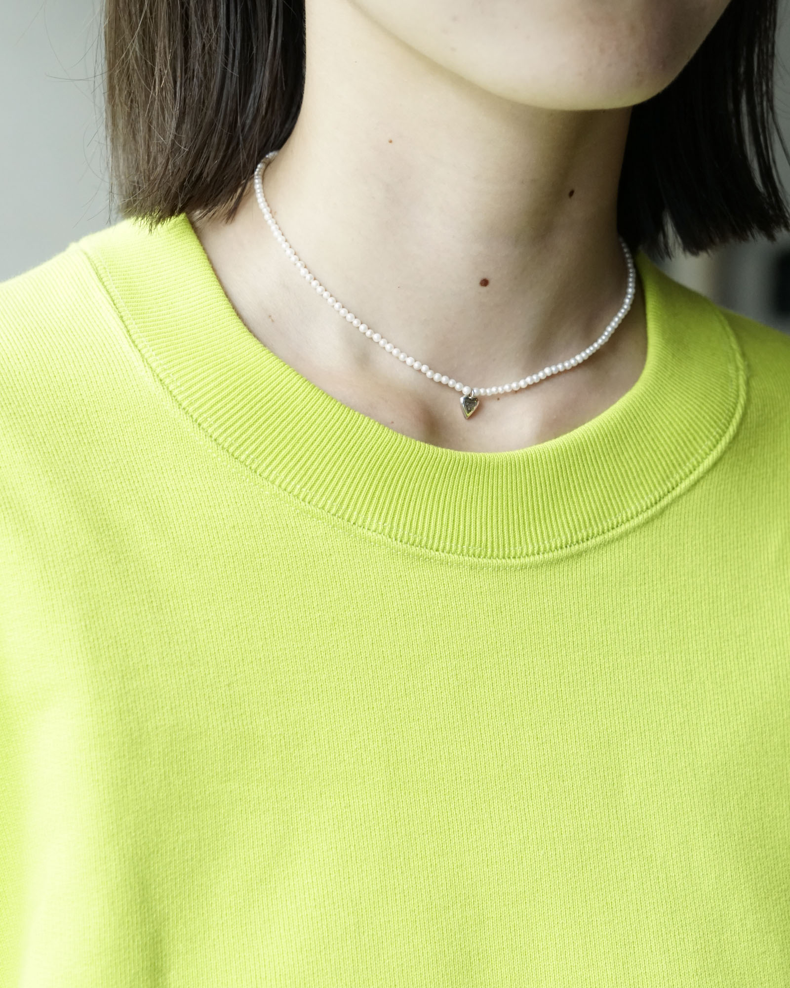 BABY HEARTは丁度鎖骨の間にハートが来る長さ。ちょこんとした小さなハートが愛おしい。
