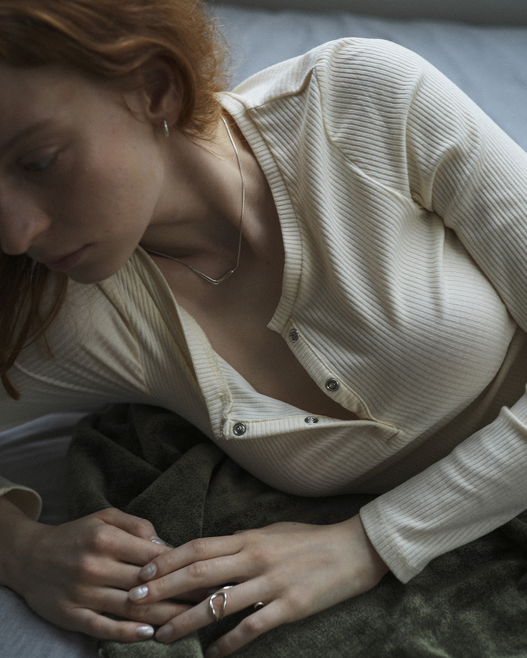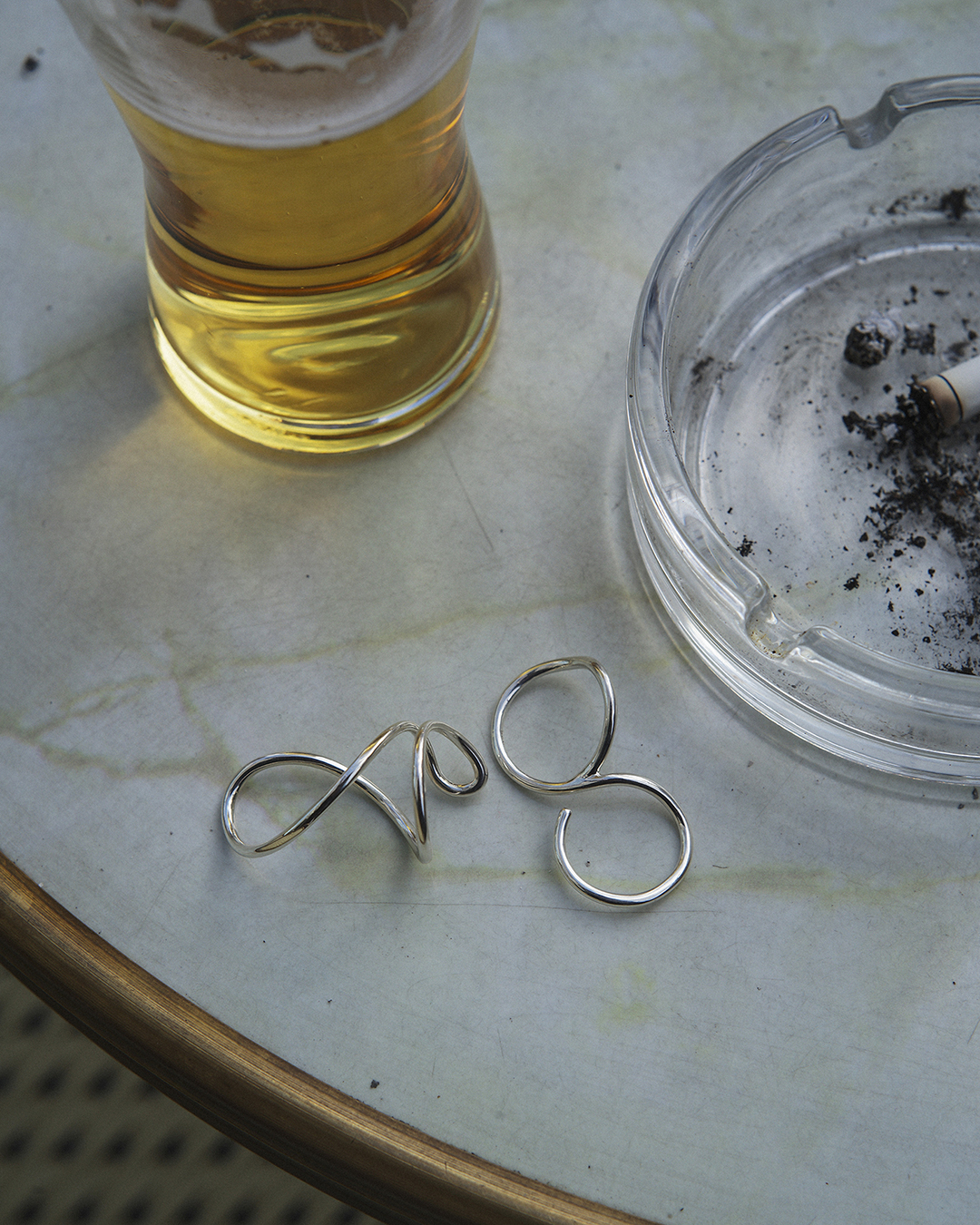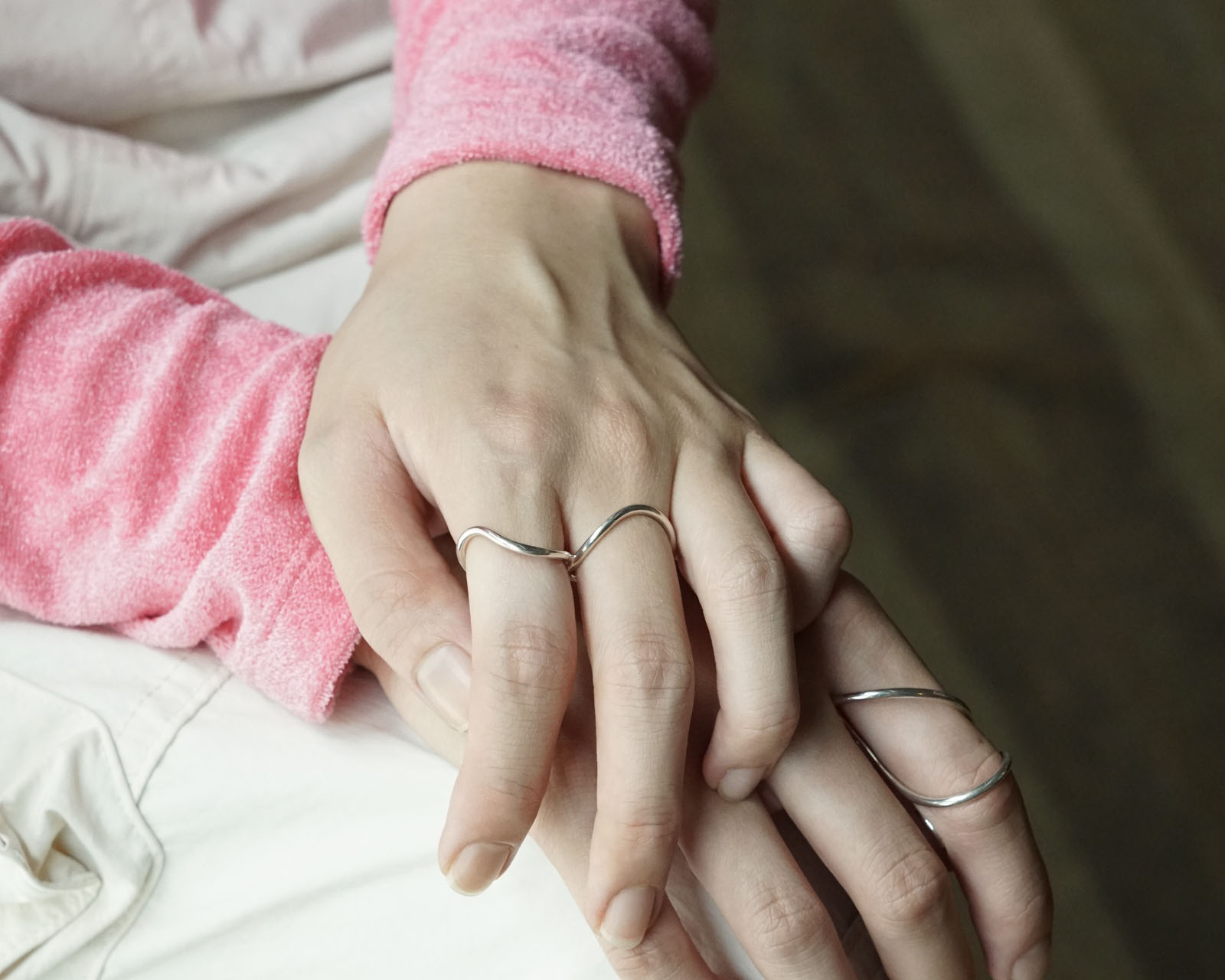 指を這う華奢なシルバーの線が美しく、BONEEの"身につける人の肌に寄り添う”というコンセプトを体現したかのような作品です。
