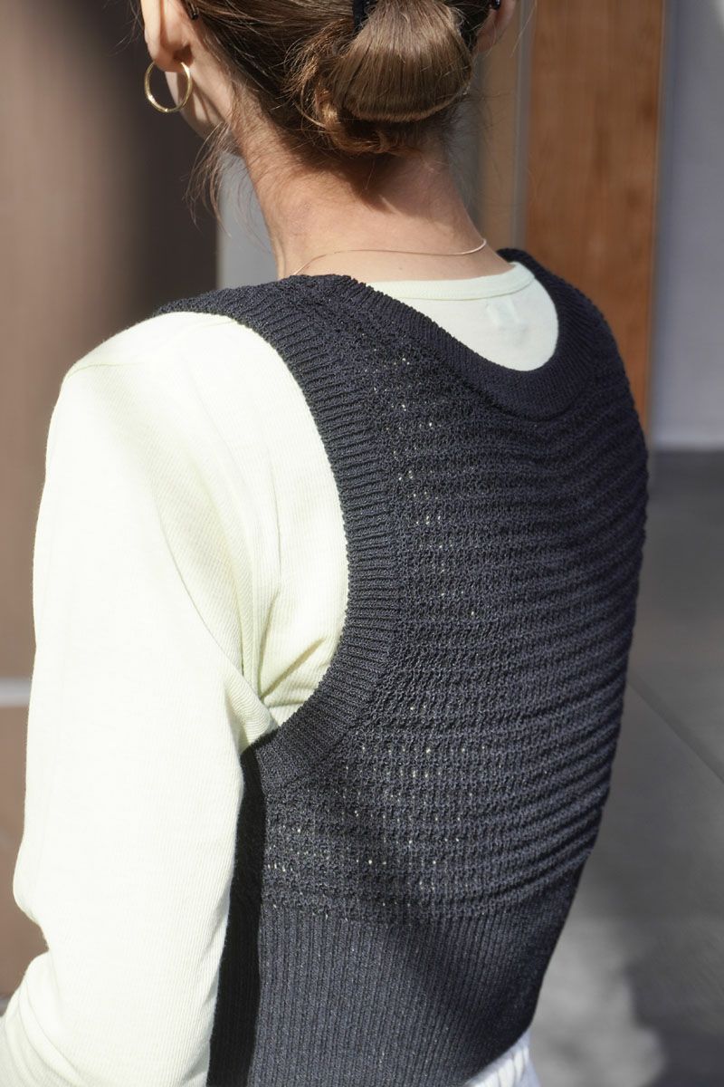 U NECK KNIT VEST[BLACK]