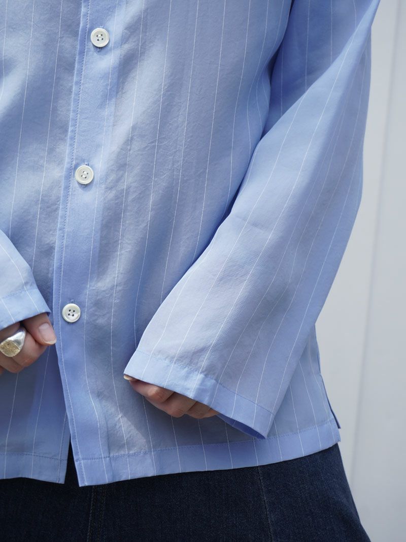 PINSTRIPED SHEER PAJAMA SHIRT[BLUE]