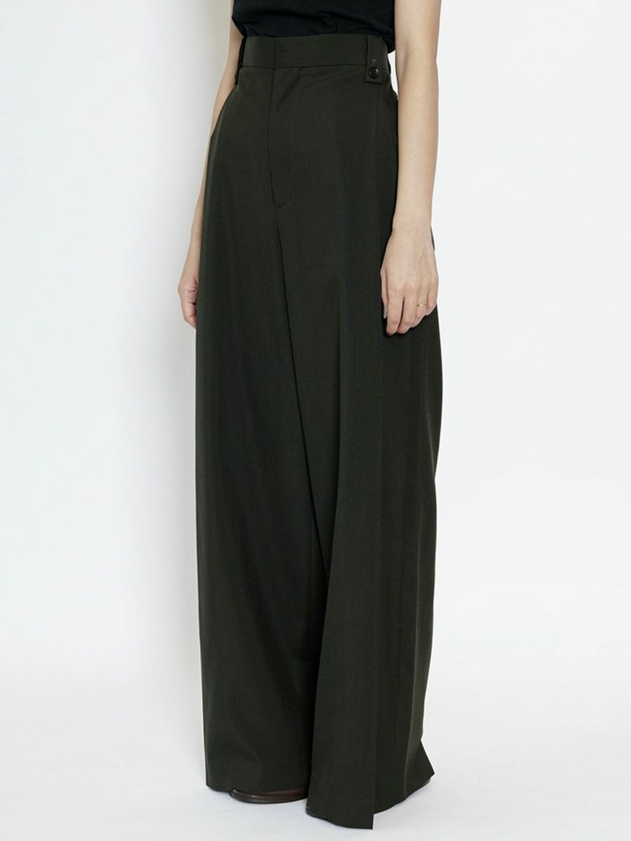 SUMMER WOOL WIDE PLEATS TROUSERS[KHAKI]