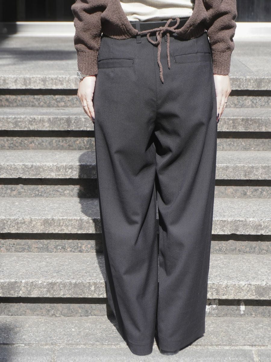 SUMMER WOOL WIDE PLEATS TROUSERS[BLACK]