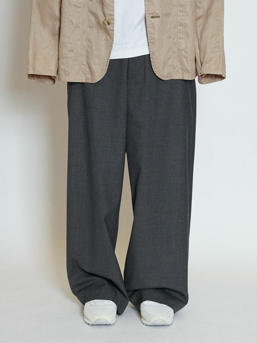 SUMMER WOOL WIDE TROUSERS[GRAY]