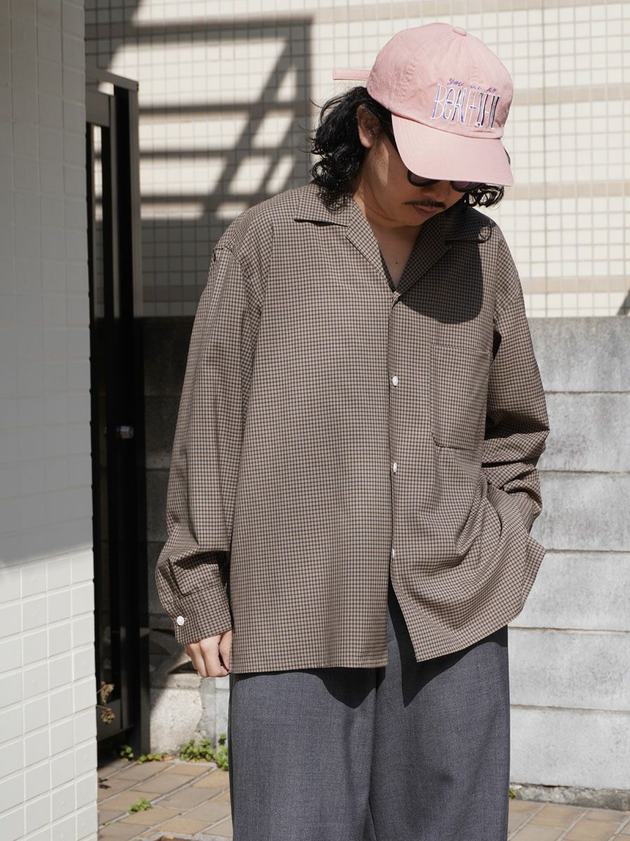 Summer Wool Open Collar Shirt[KHAKI PLAID]