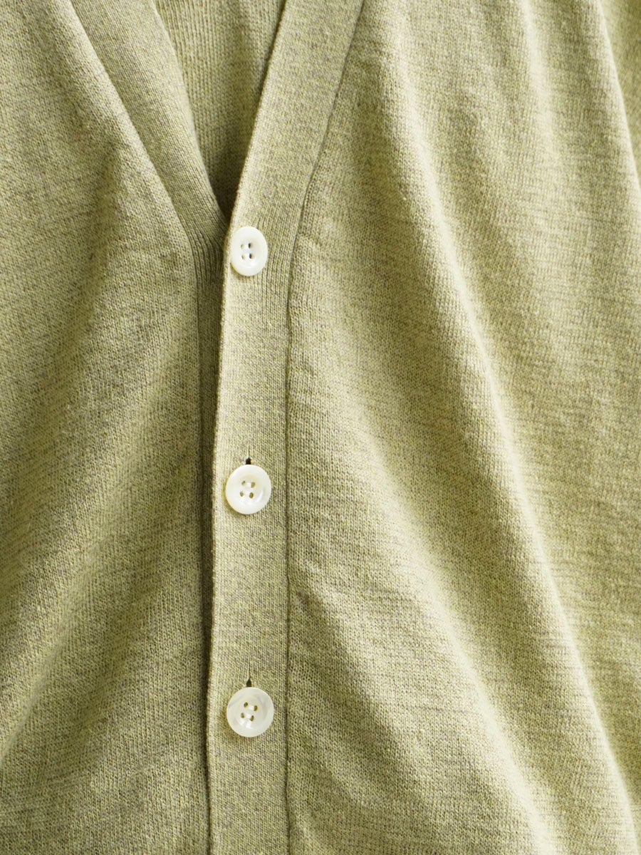 LINEN / SILK PLAIN STITCH V NECK C/D[MEADOW]