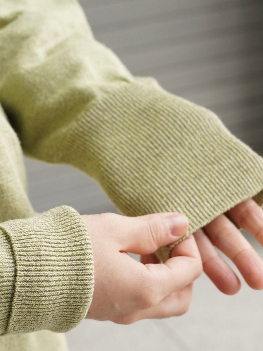 LINEN / SILK PLAIN STITCH V NECK L/S[MEADOW]