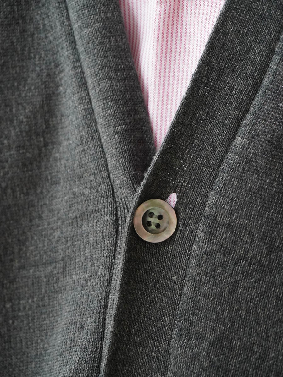 LINEN / SILK PLAIN STITCH V NECK C/D[CHARCOAL]